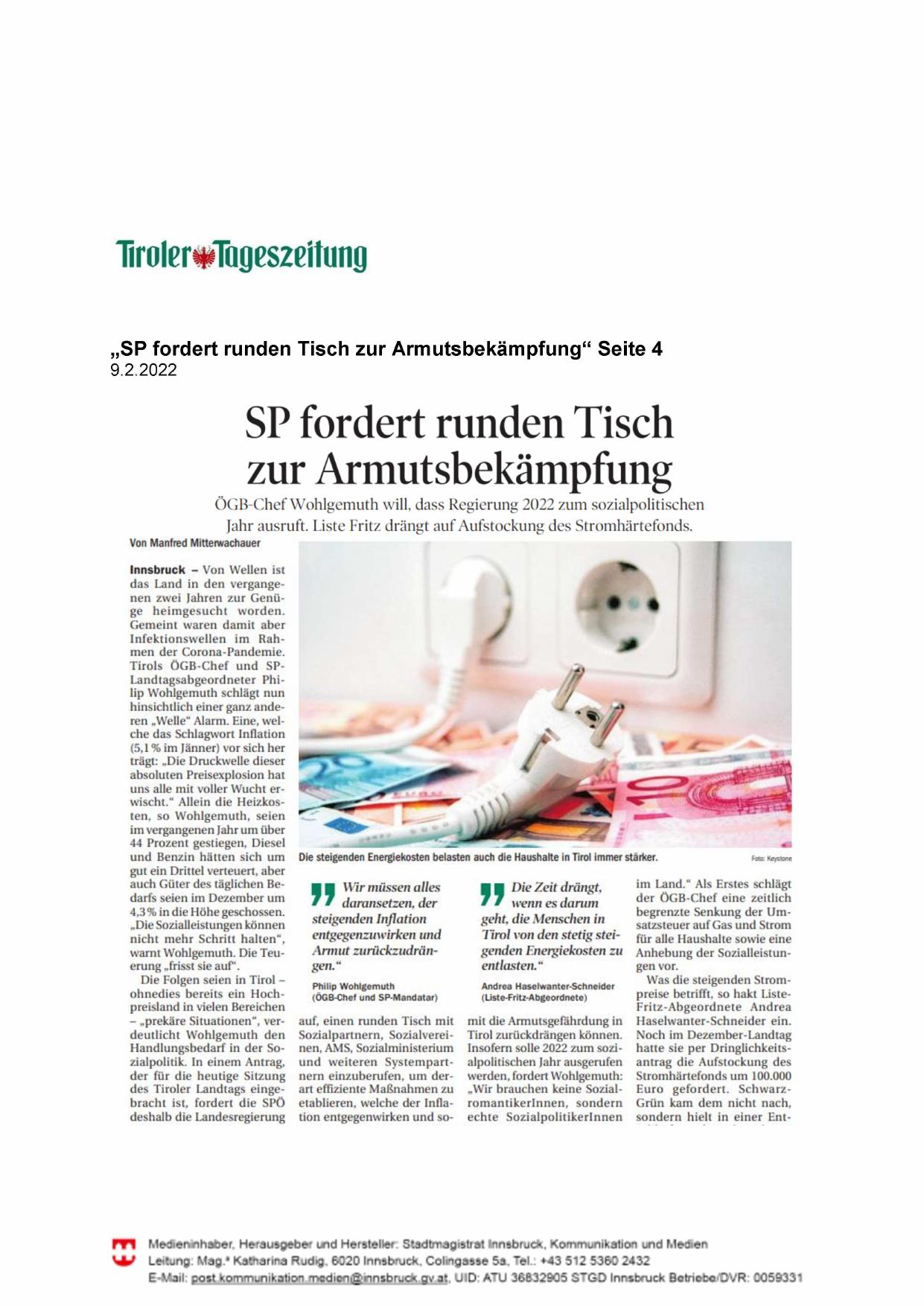 des Tiroler Landtags eingebracht ist, fordert die SPÖ