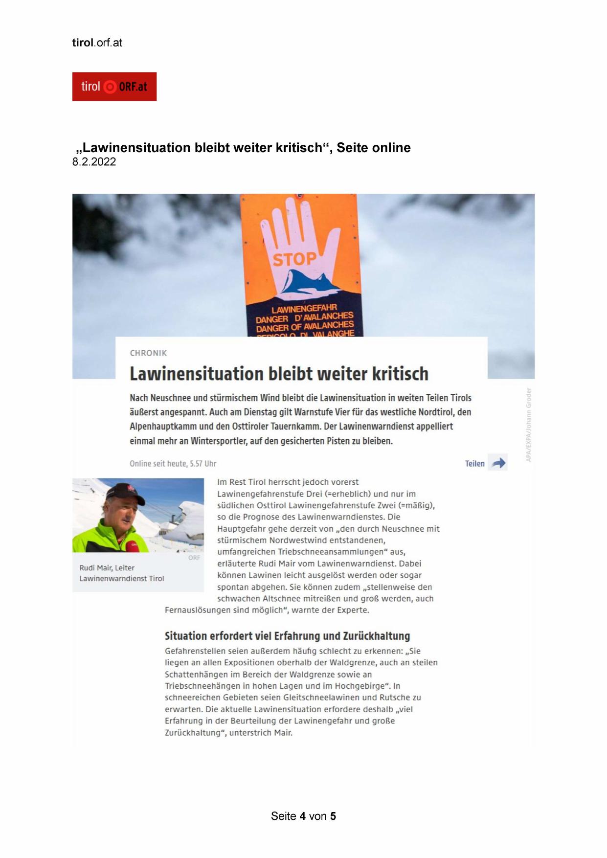 „Lawinensituation bleibt weiter kritisch“‘“, Seite online