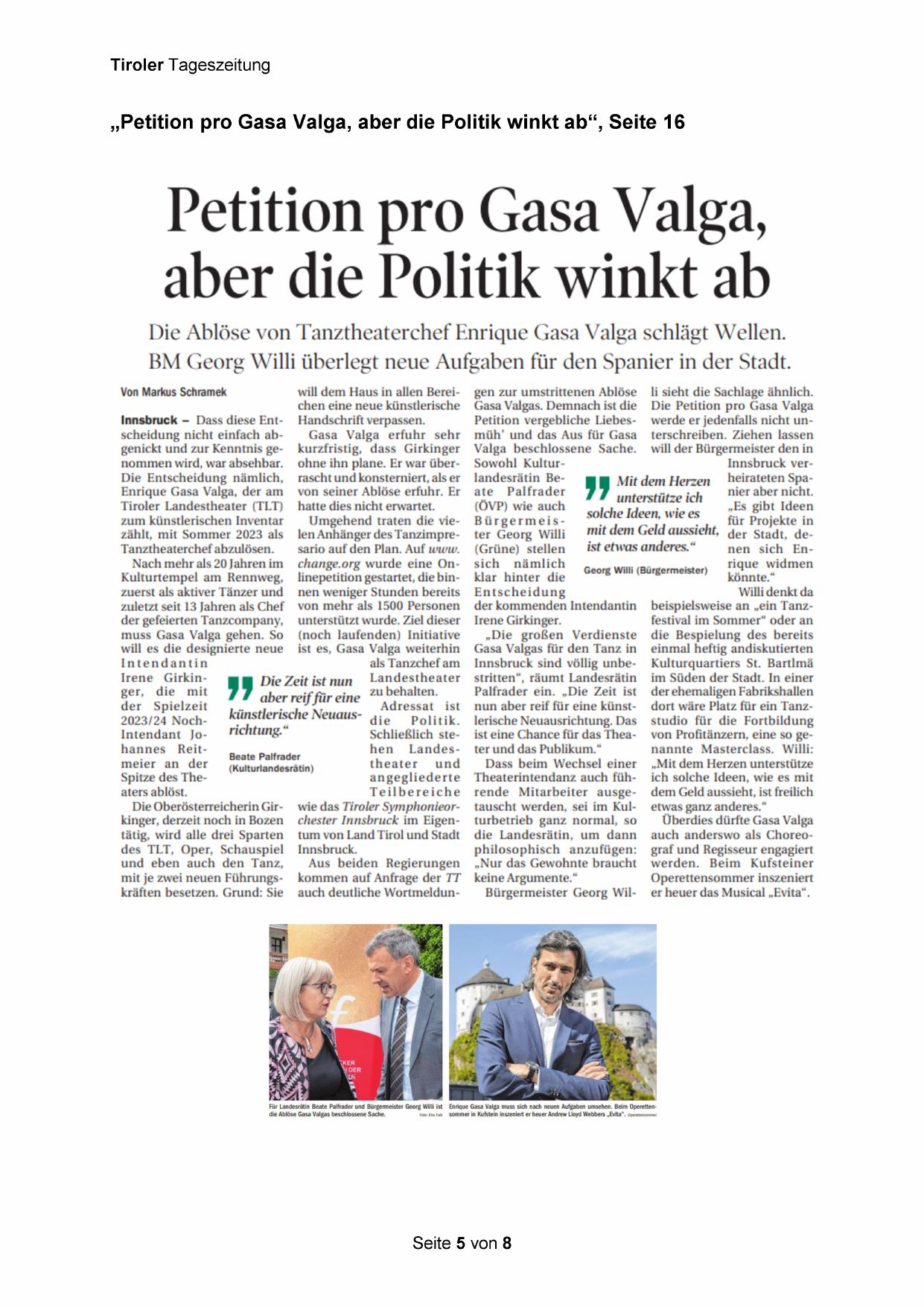 Die Ablöse von Tanztheaterchef Enrique Gasa Valga schlägt Wellen.