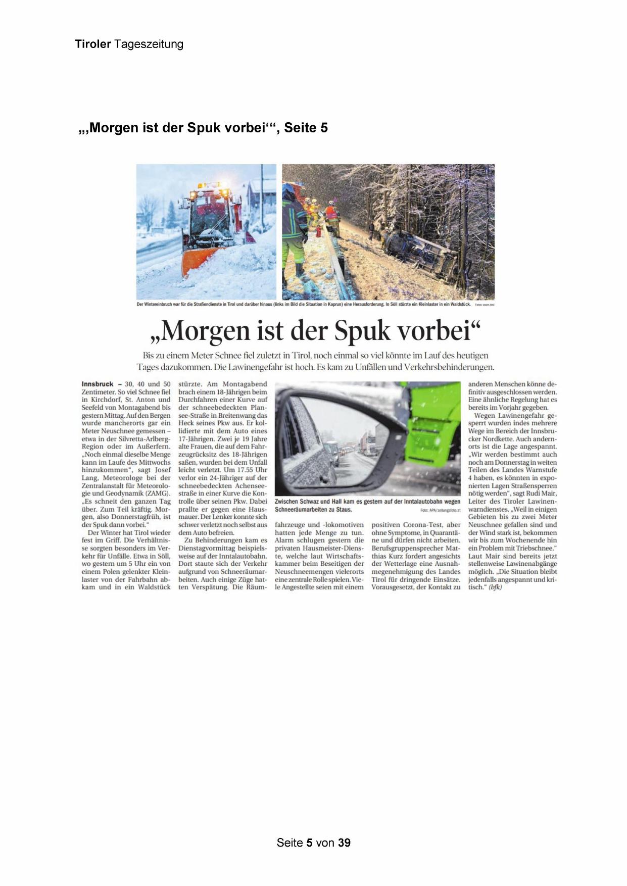 Tages dazukommen. Die Lawinengefahr ist hoch. Es kam zu Unfällen und Verkehrsbehinderungen.