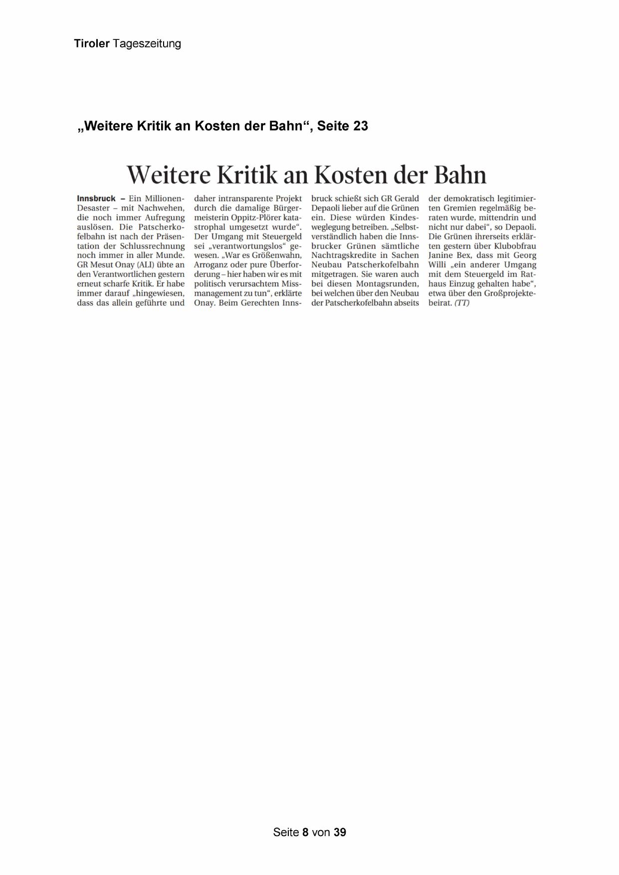 „Weitere Kritik an Kosten der Bahn“, Seite 23