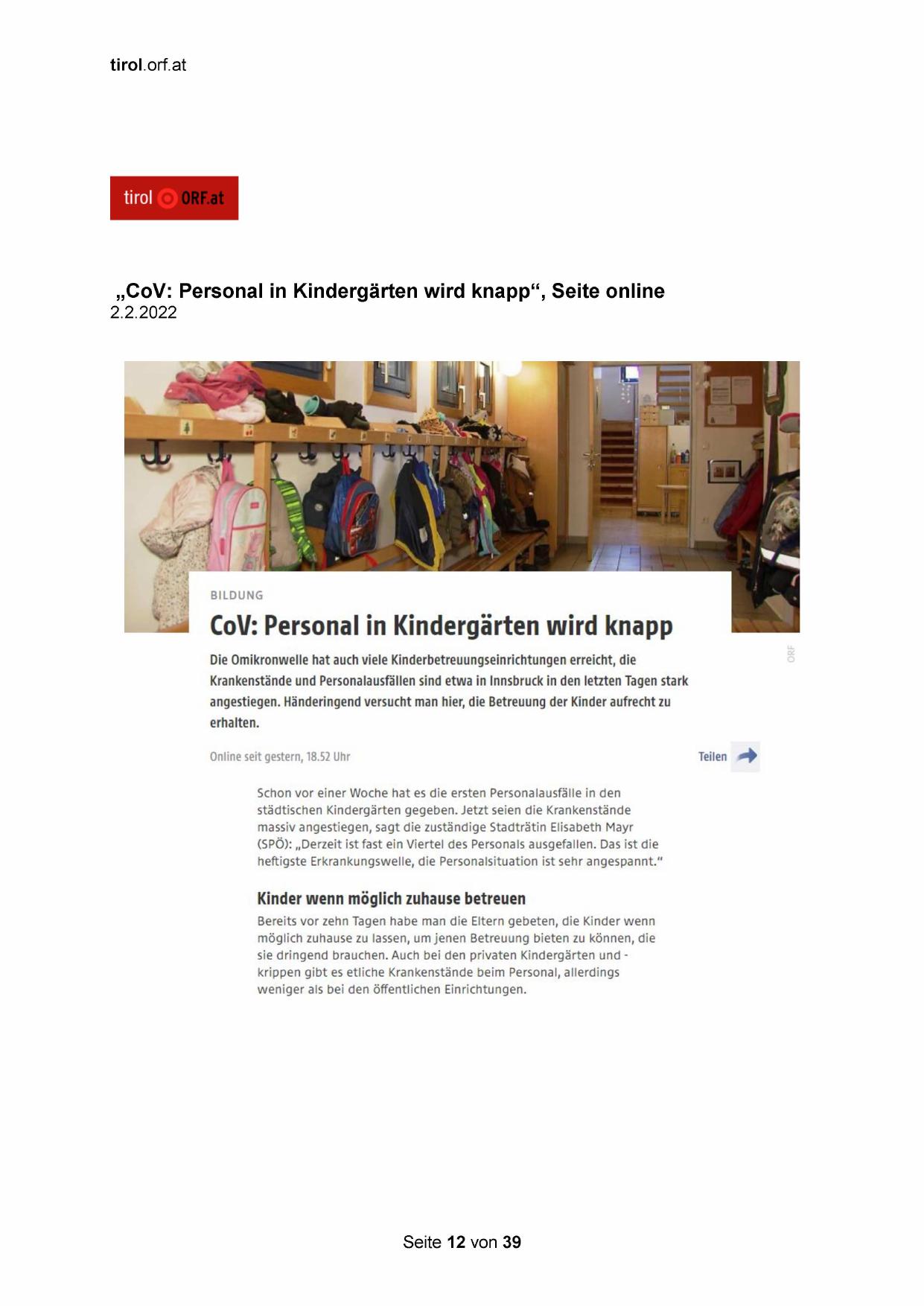 „CoV: Personal in Kindergärten wird knapp“, Seite online