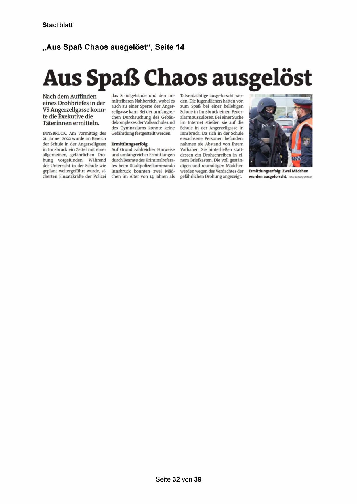 auch zu einer Sperre der Angerzellgasse kam. Bei der umfangreichen Durchsuchung des Gebäudekomplexes der Volksschule und