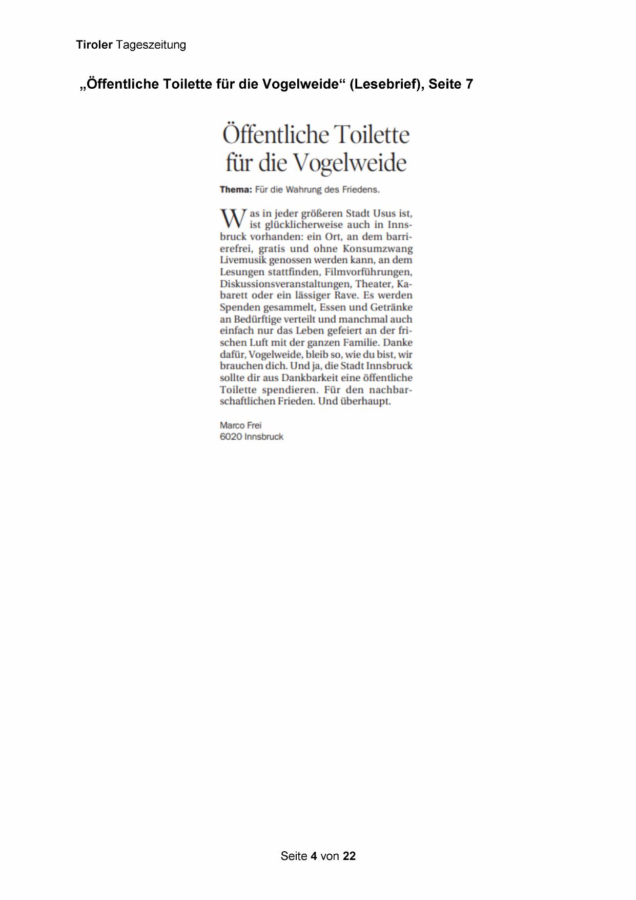 „Öffentliche Toilette für die Vogelweide“ (Lesebrief), Seite 7