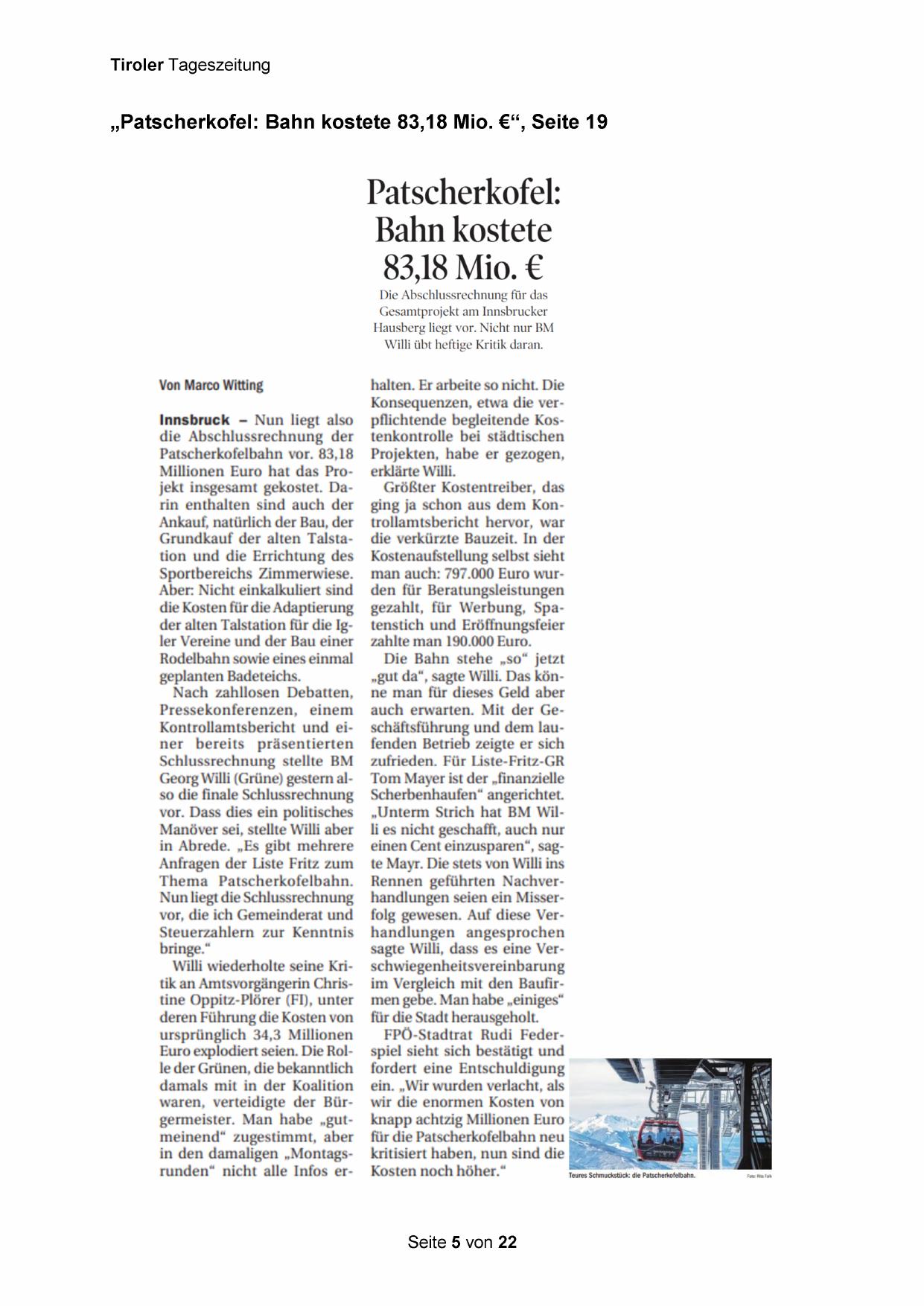 „Patscherkofel: Bahn kostete 83,18 Mio. €“, Seite 19