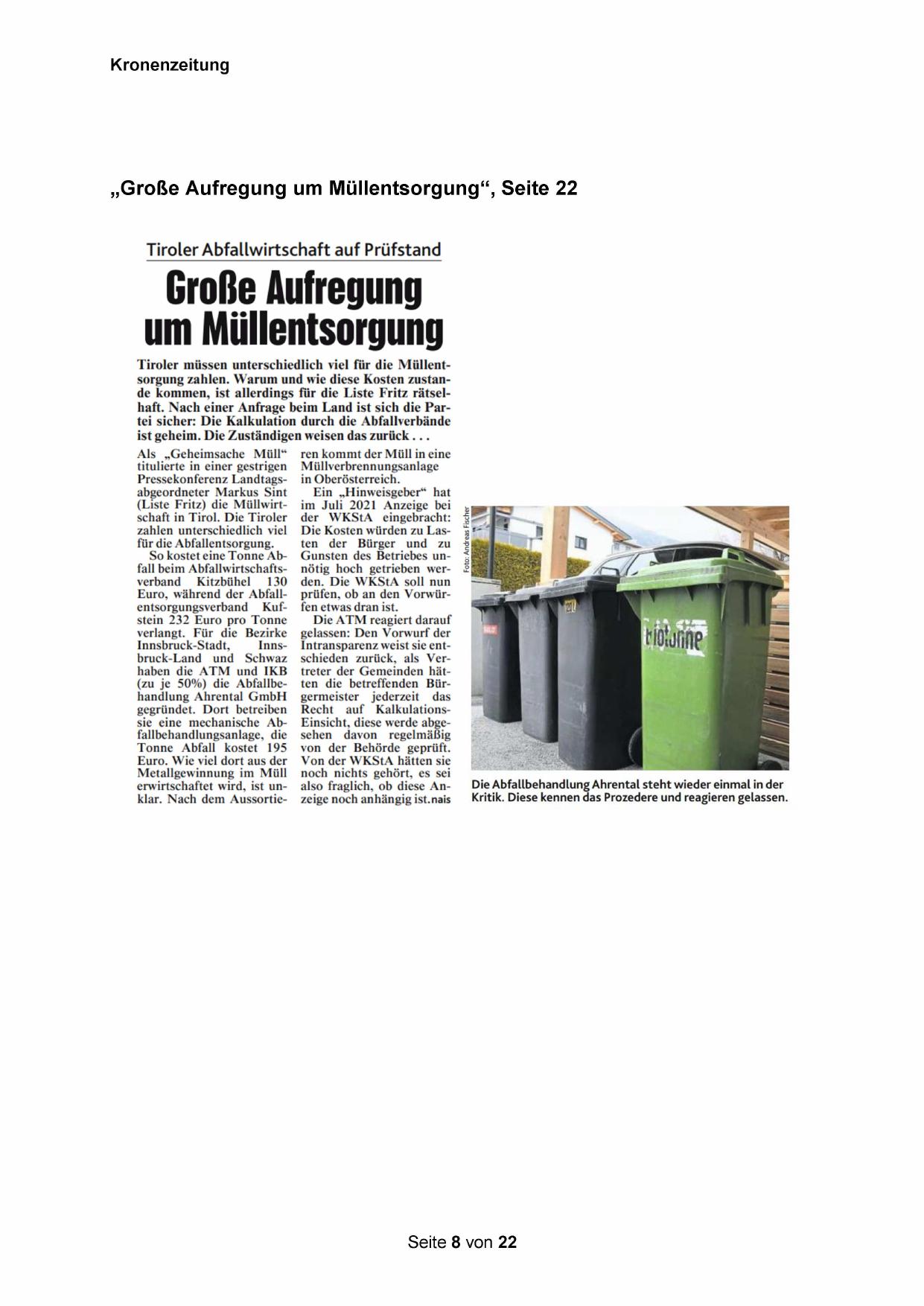 (Liste Fritz) die Müllwirtschaft in Tirol. Die Tiroler
