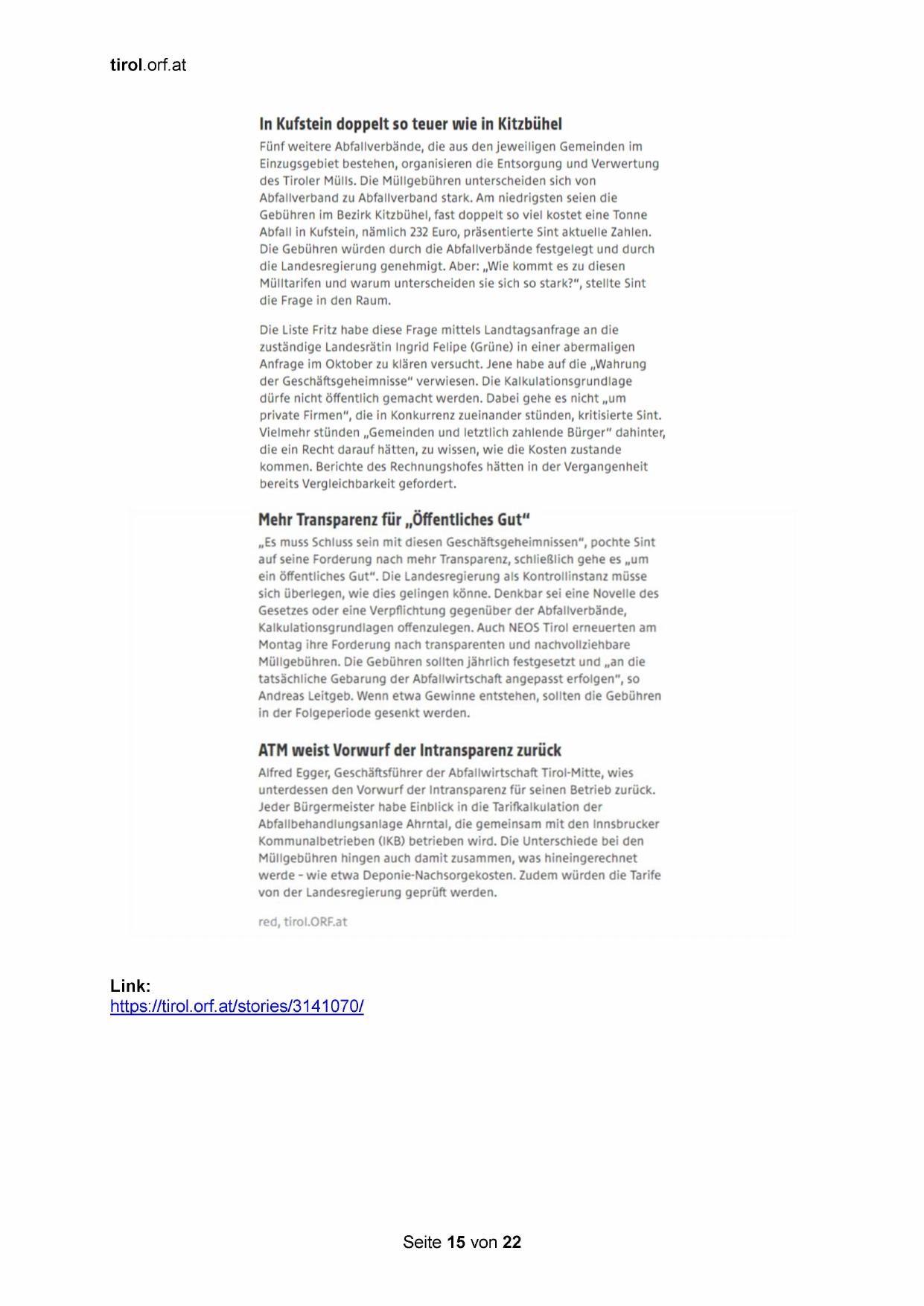 Kalkulationsgrundlagen offenzulegen. Auch NEOS Tirol erneuerten am