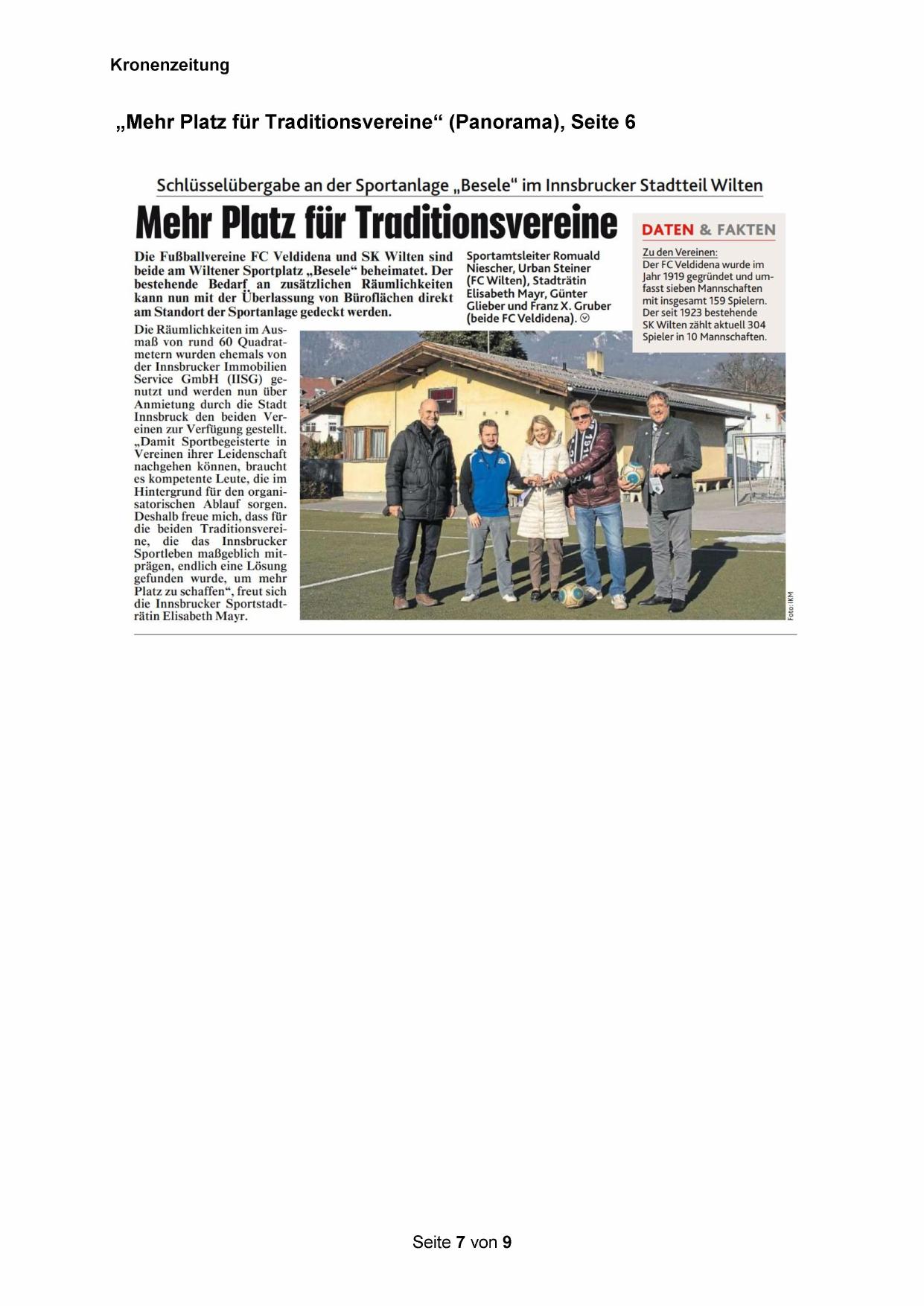 Die Fußballvereine FC Veldidena und SK Wilten sind Sportamtsleiter Romuald