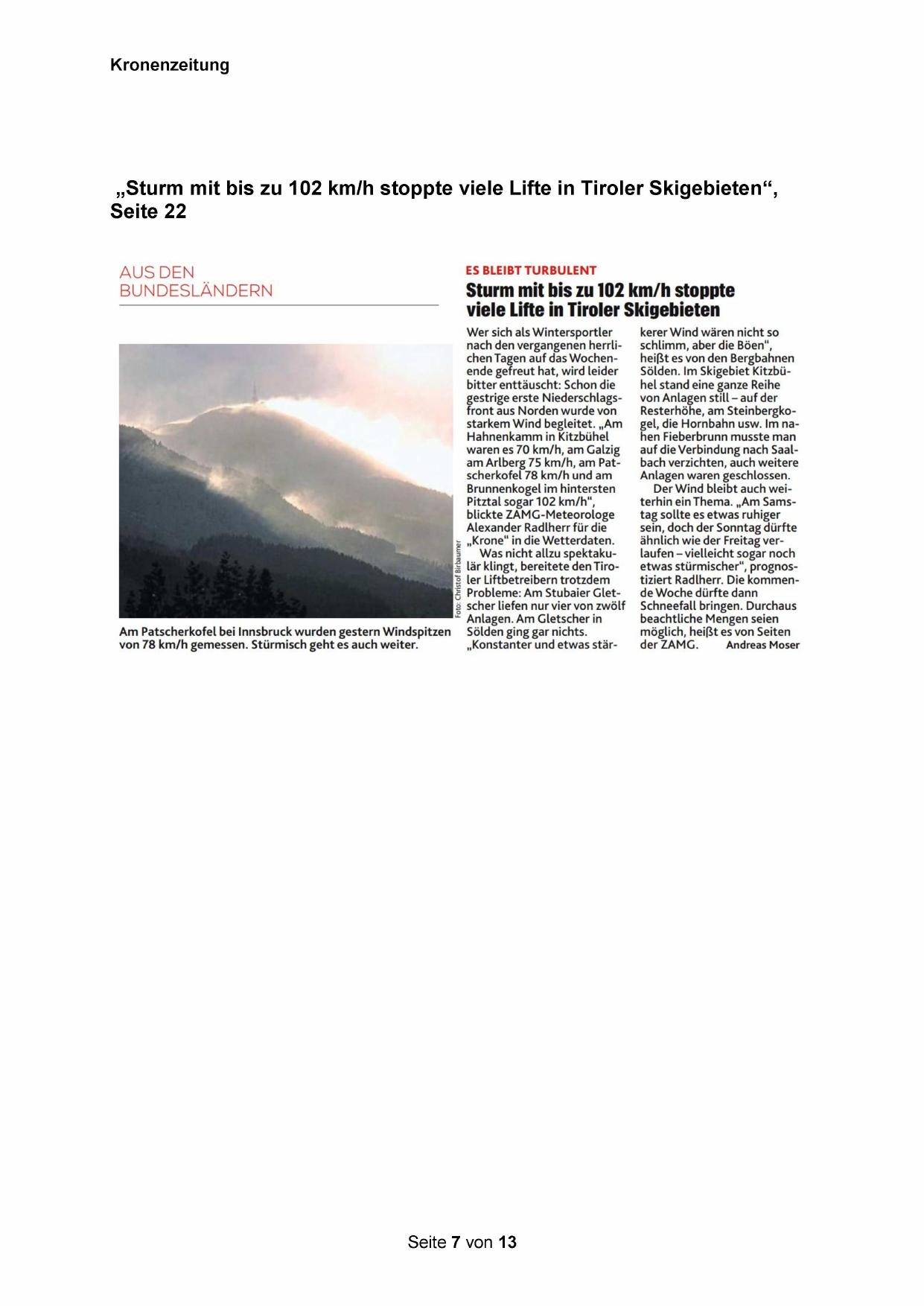 „Sturm mit bis zu 102 km/h stoppte viele Lifte in Tiroler Skigebieten“,