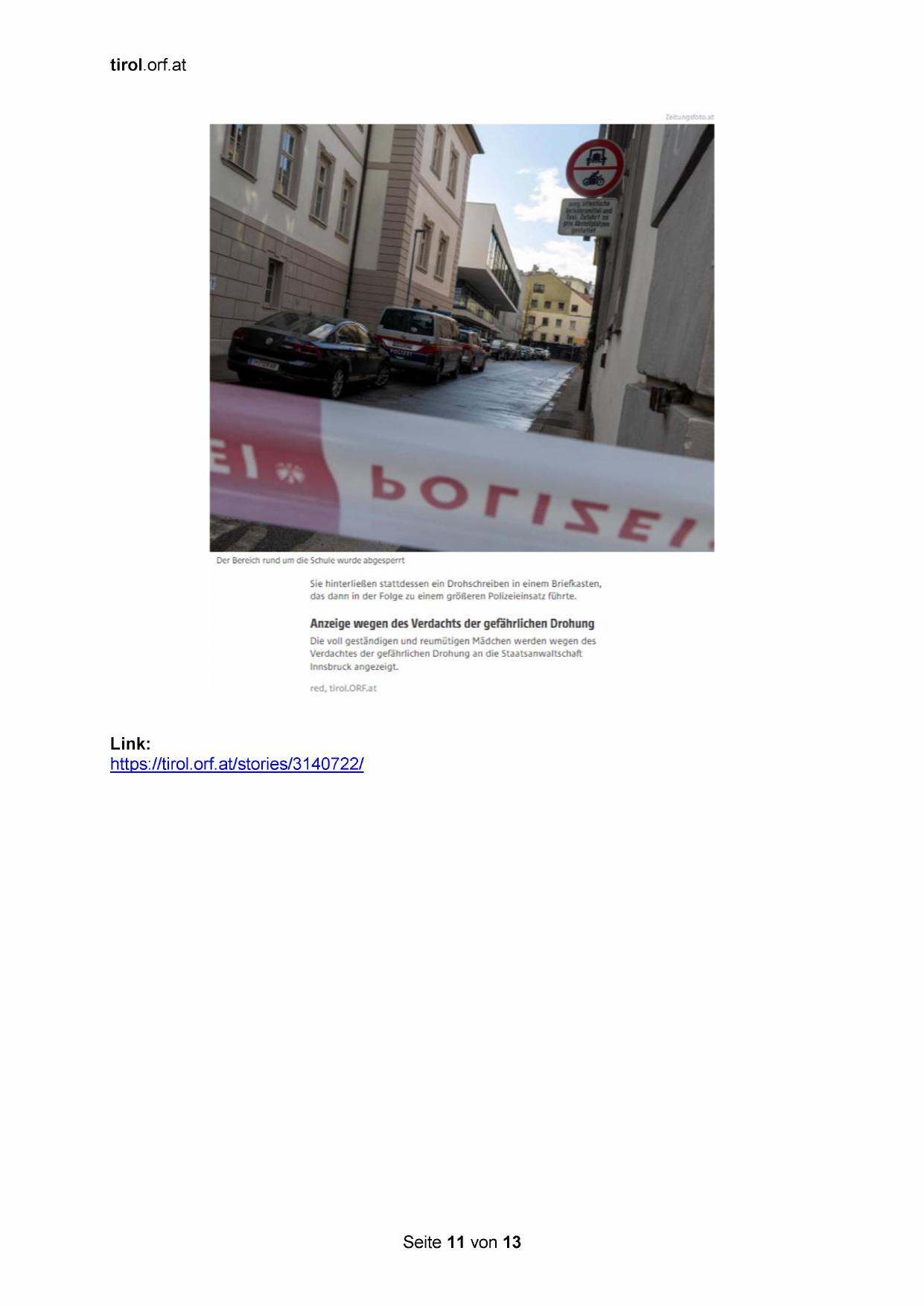 das dann in der Folge zu einem größeren Polizeieinsatz führte.