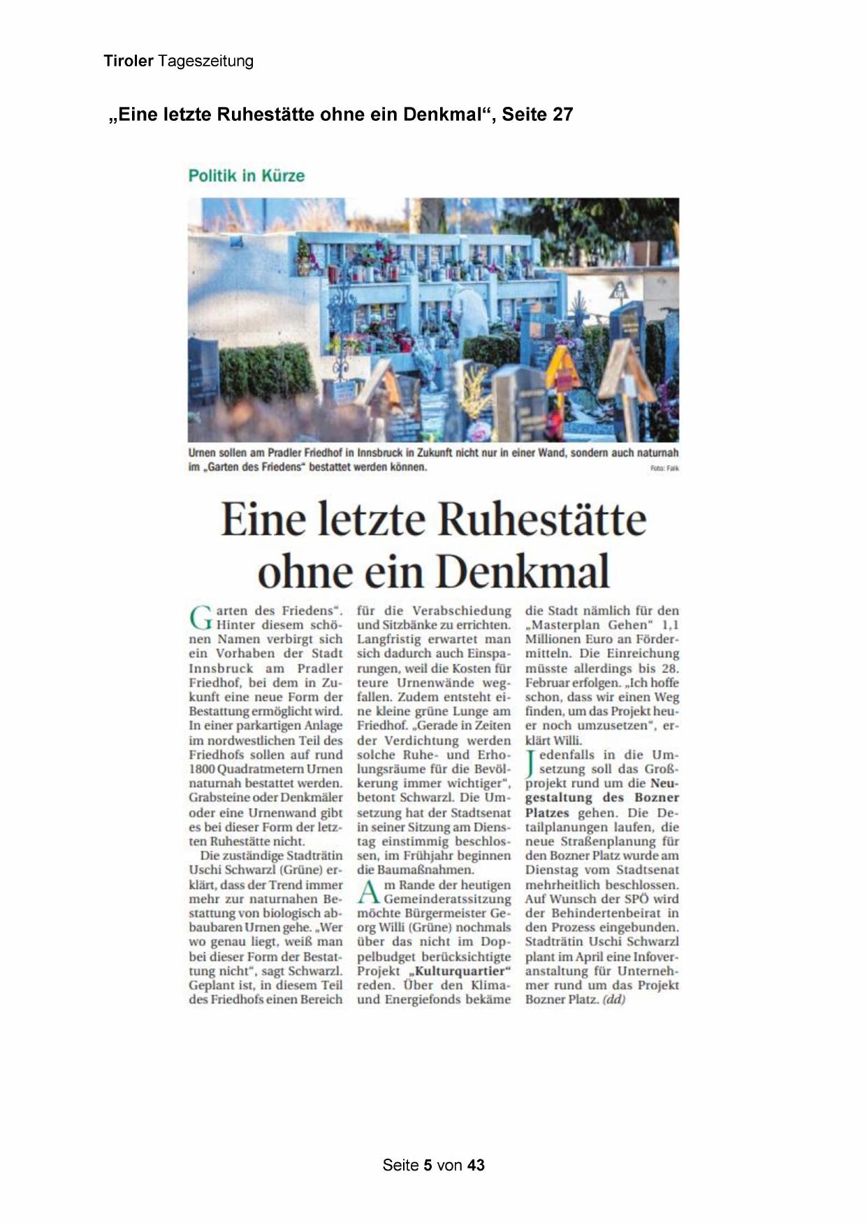 Urnen sollen am Pradier Friedhof In Innsbruck in Zukunft nicht nur In einer Wand, sondern auch natumah