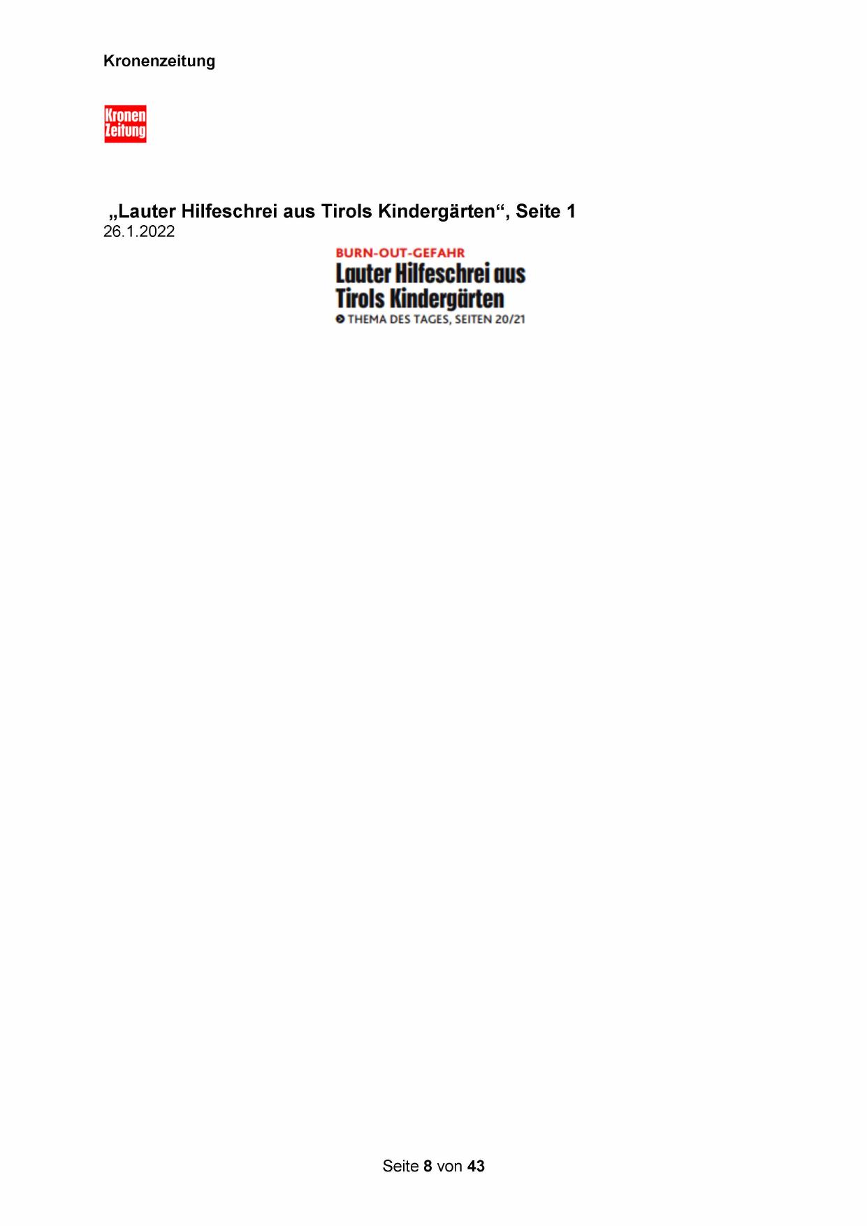 „Lauter Hilfeschrei aus Tirols Kindergärten“, Seite 1