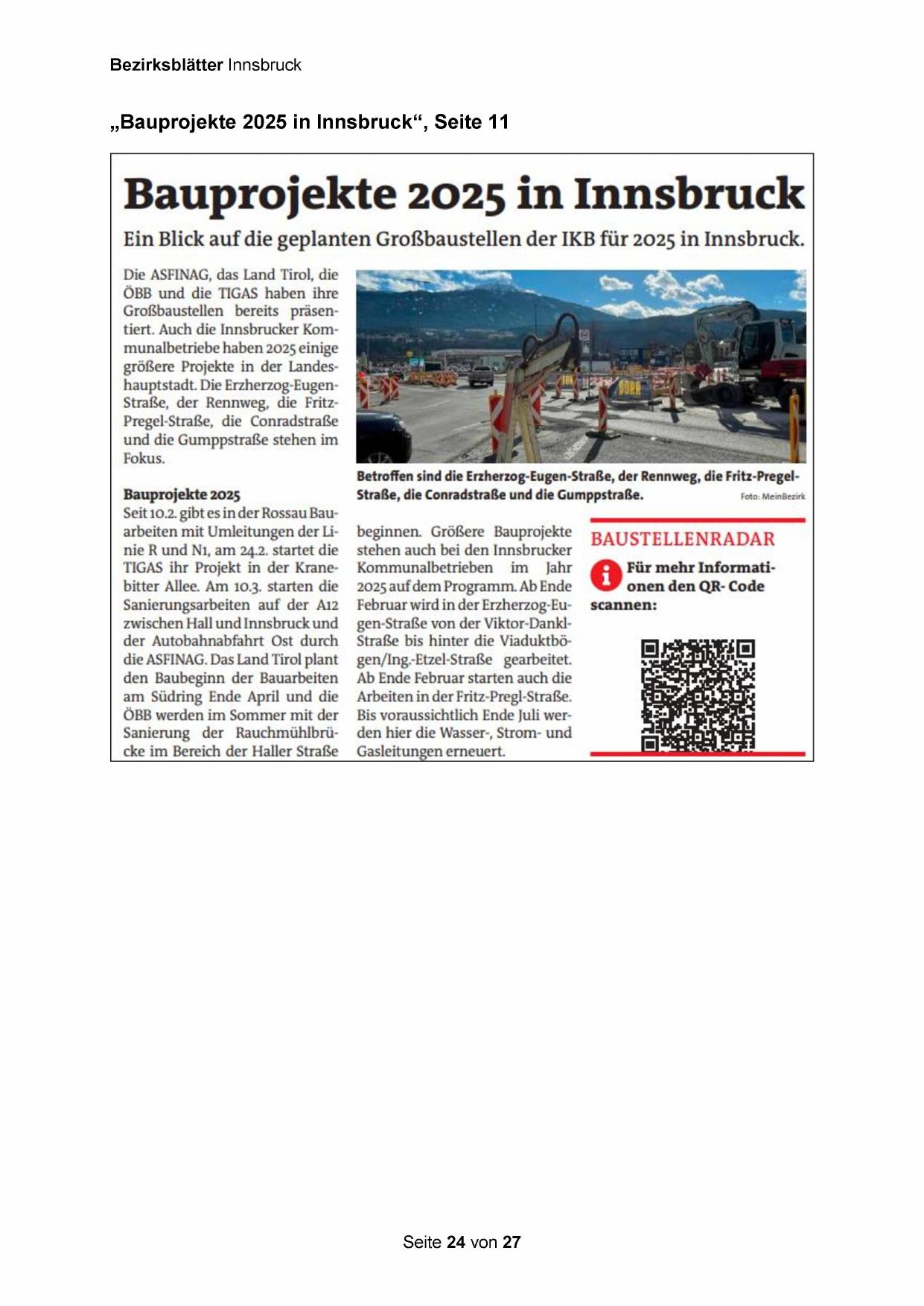 Großbaustellen bereits präsentiert. Auch die Innsbrucker Kommunalbetriebe haben 2025 einige