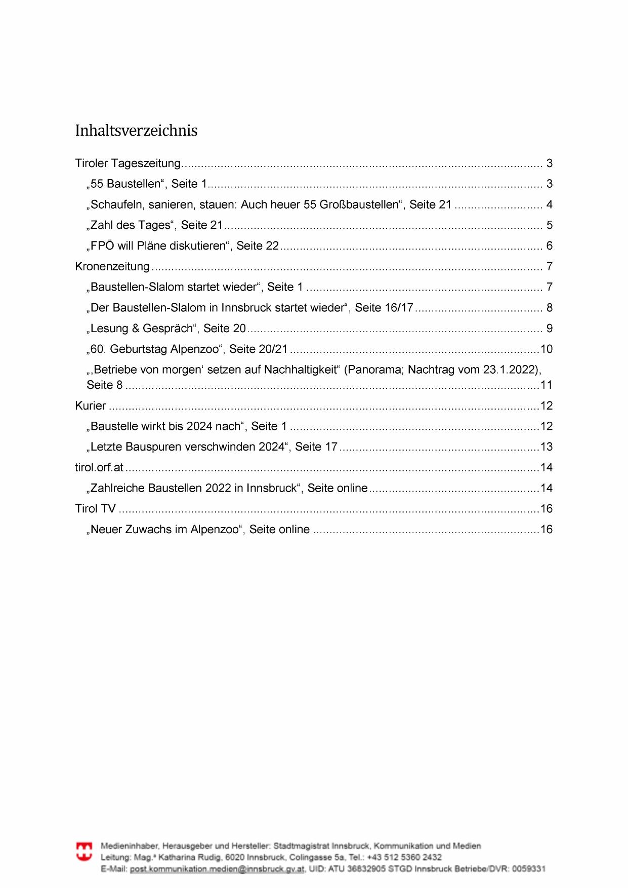 „Zahlreiche Baustellen 2022 in Innsbruck“, Seite ONliNE .. 14