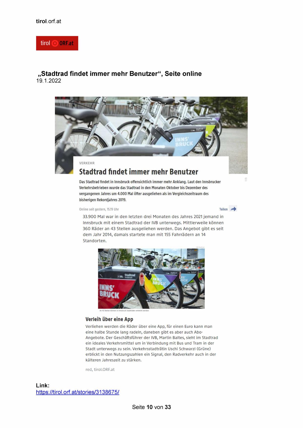 „Stadtrad findet immer mehr Benutzer“, Seite online