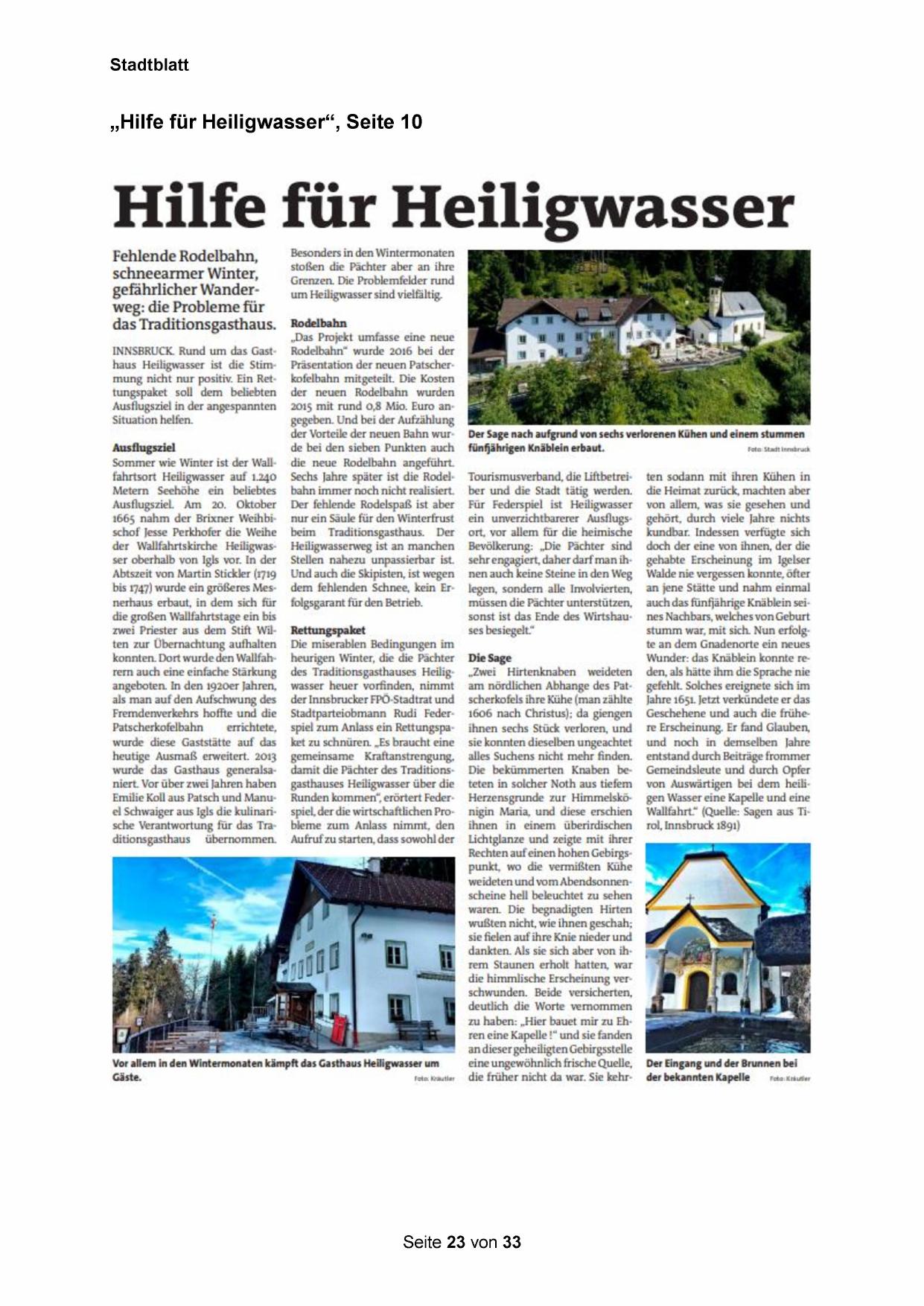 Für Federspiel ist Heiligwasser