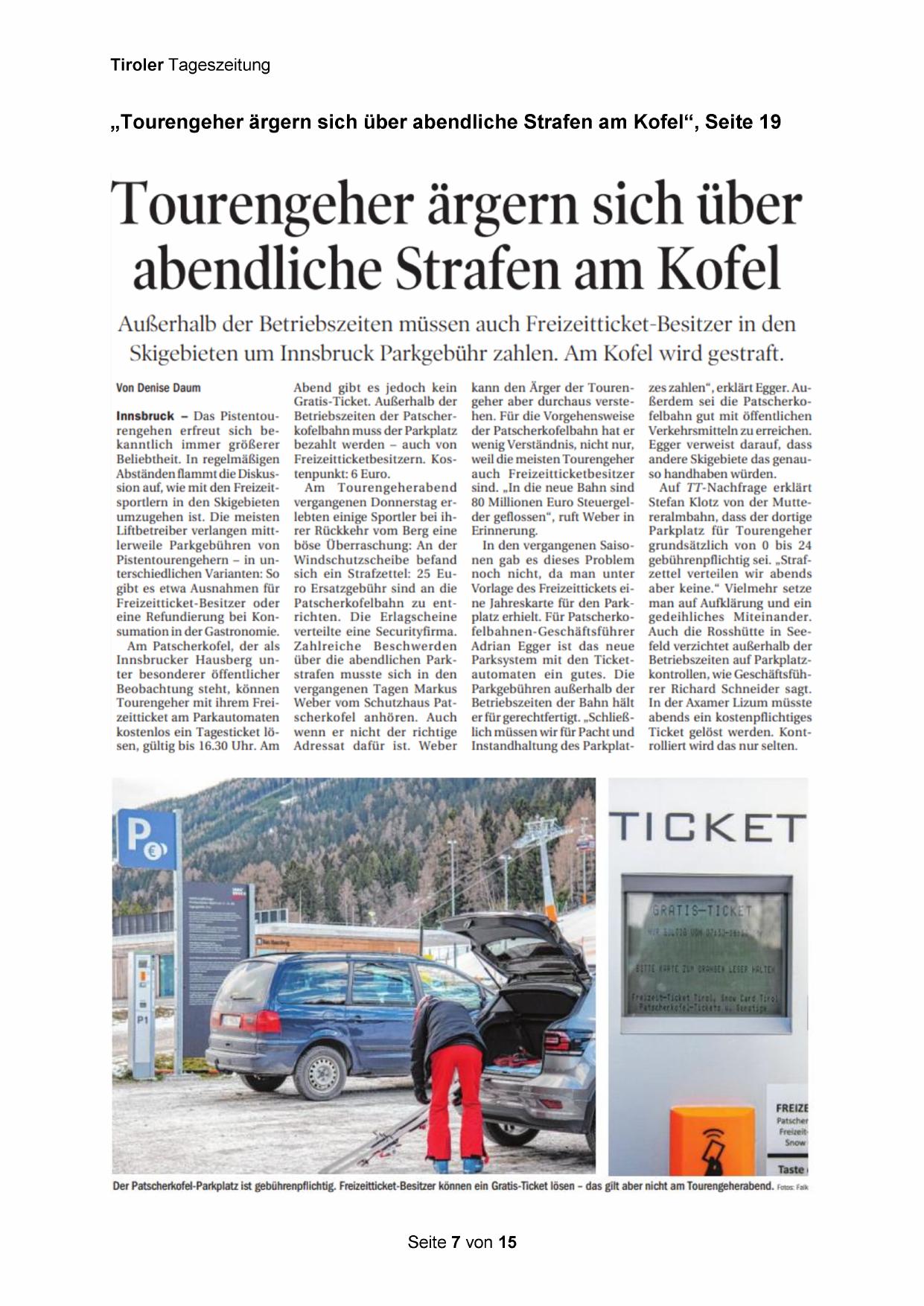 „Tourengeher ärgern sich über abendliche Strafen am Kofel“, Seite 19
