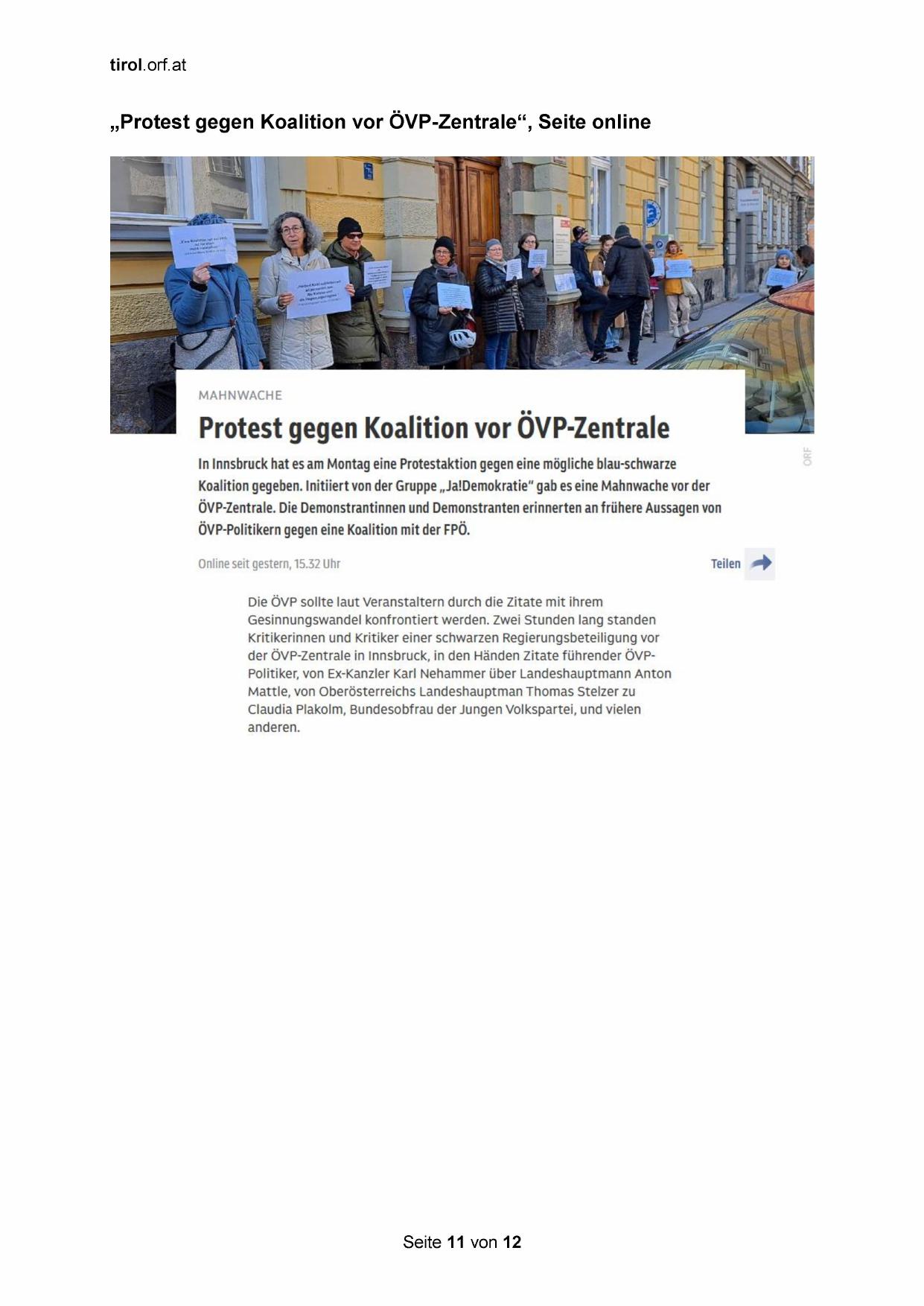 „Protest gegen Koalition vor ÖVP-Zentrale“, Seite online