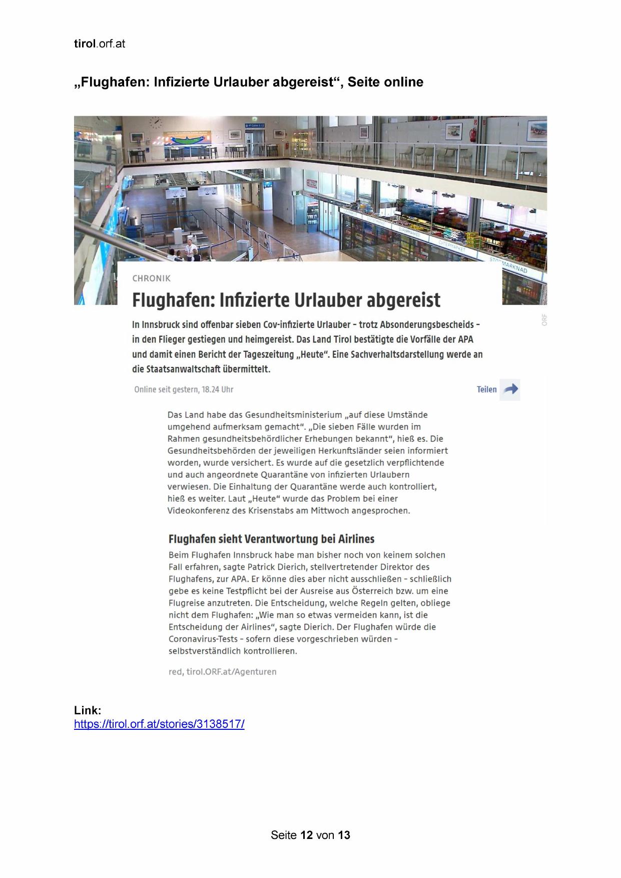 „Flughafen: Infizierte Urlauber abgereist“, Seite online