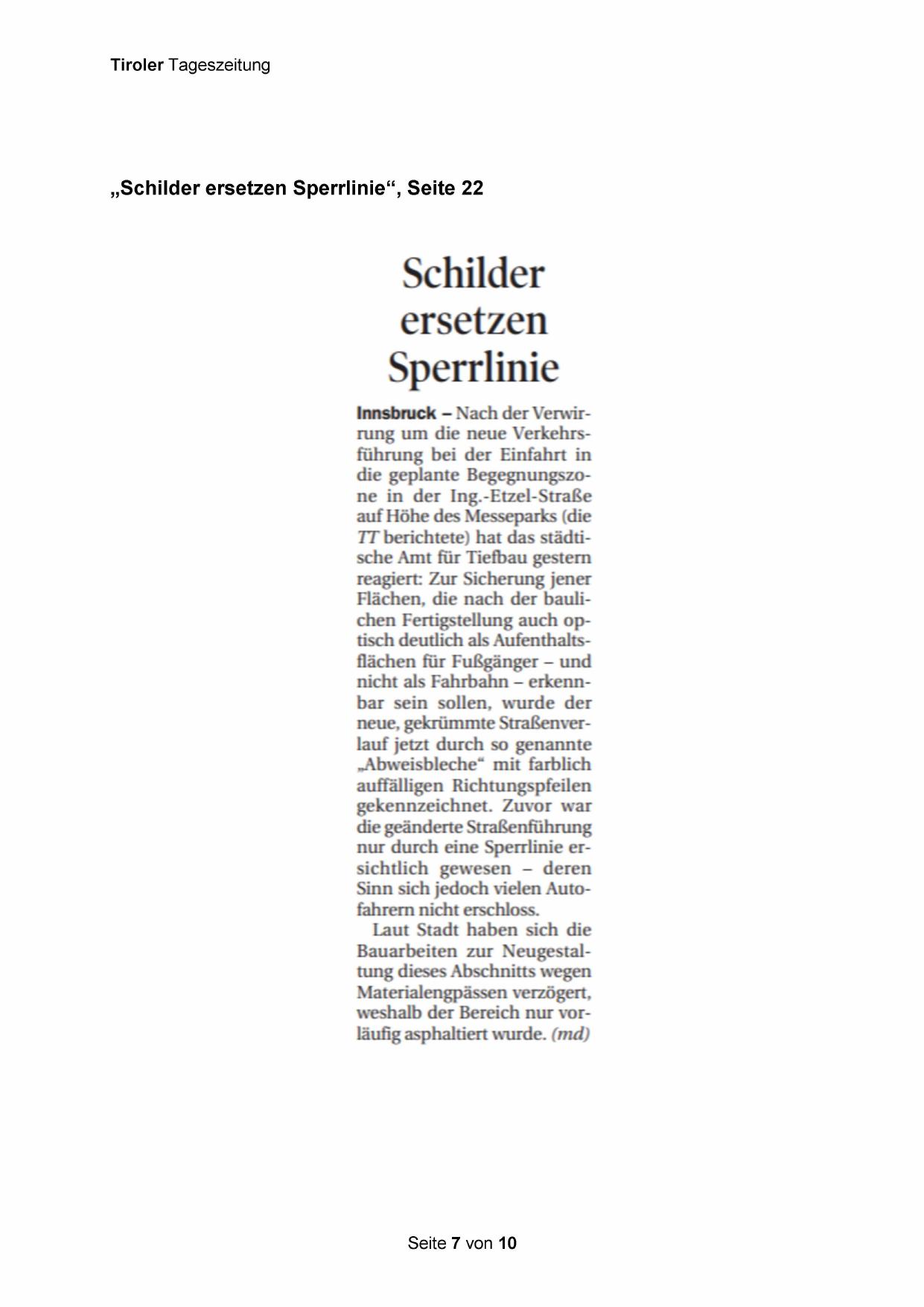 TT berichtete) hat das städtische Amt für Tiefbau gestern