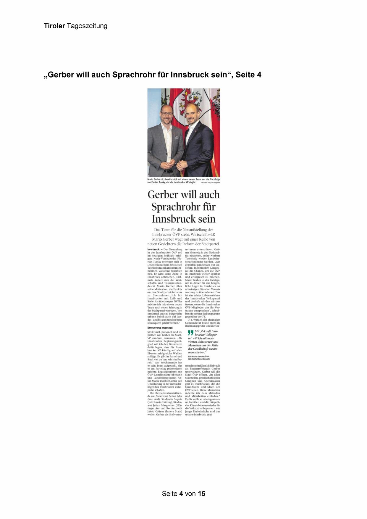 „Gerber will auch Sprachrohr für Innsbruck sein“, Seite 4
