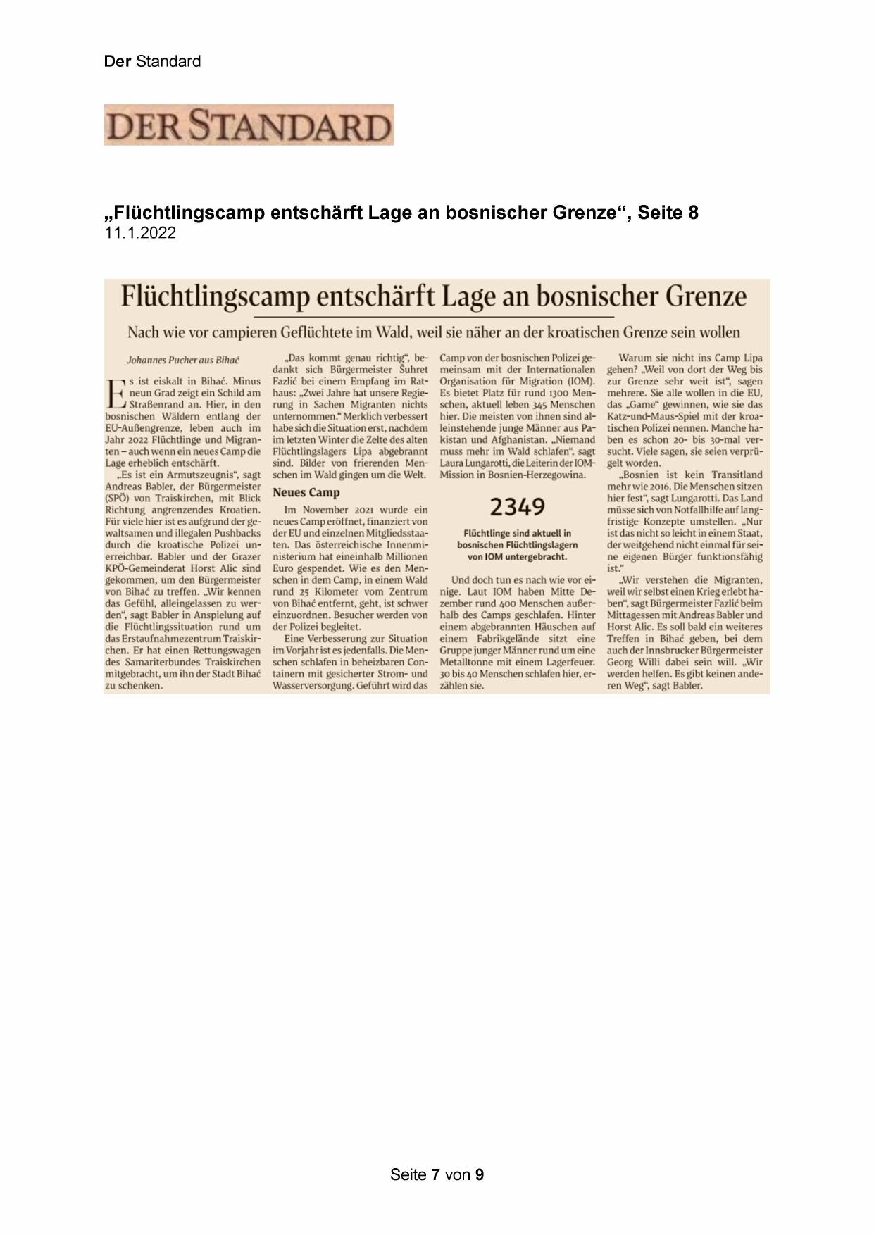„Flüchtlingscamp entschärft Lage an bosnischer Grenze“, Seite 8