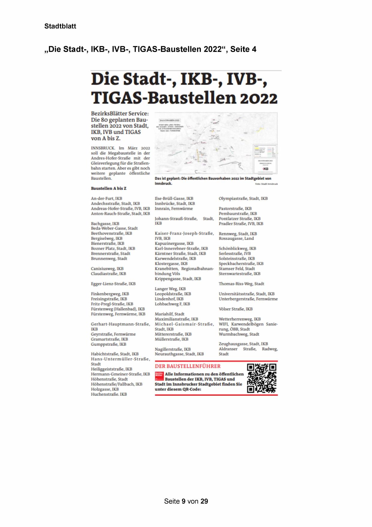 „Die Stadt-, IKB-, IVB-, TIGAS-Baustellen 2022“, Seite 4