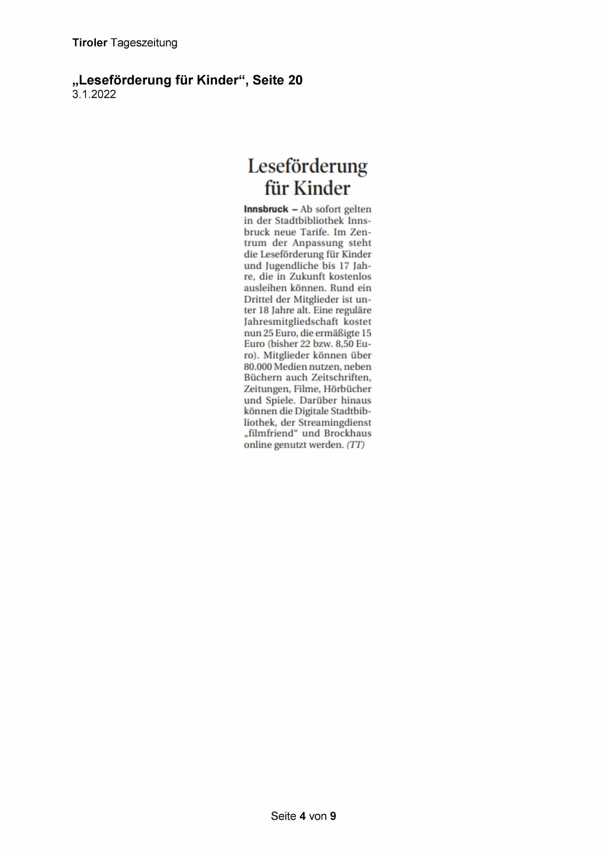 in der Stadtbibliothek Innsbruck neue Tarife. Im Zentrum der Anpassung steht
