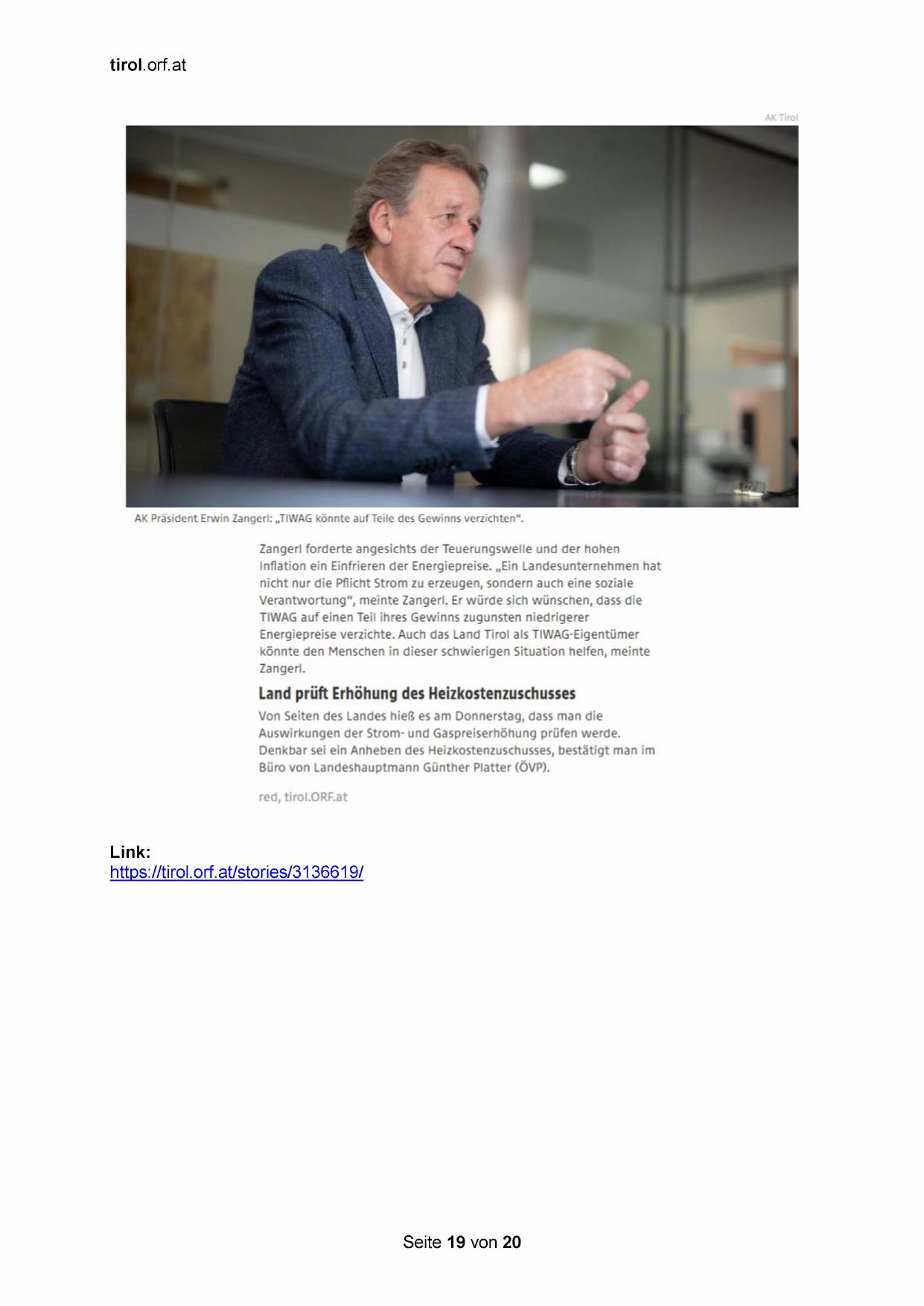 Energiepreise verzichte. Auch das Land Tirol als TIWAG-Eigentümer