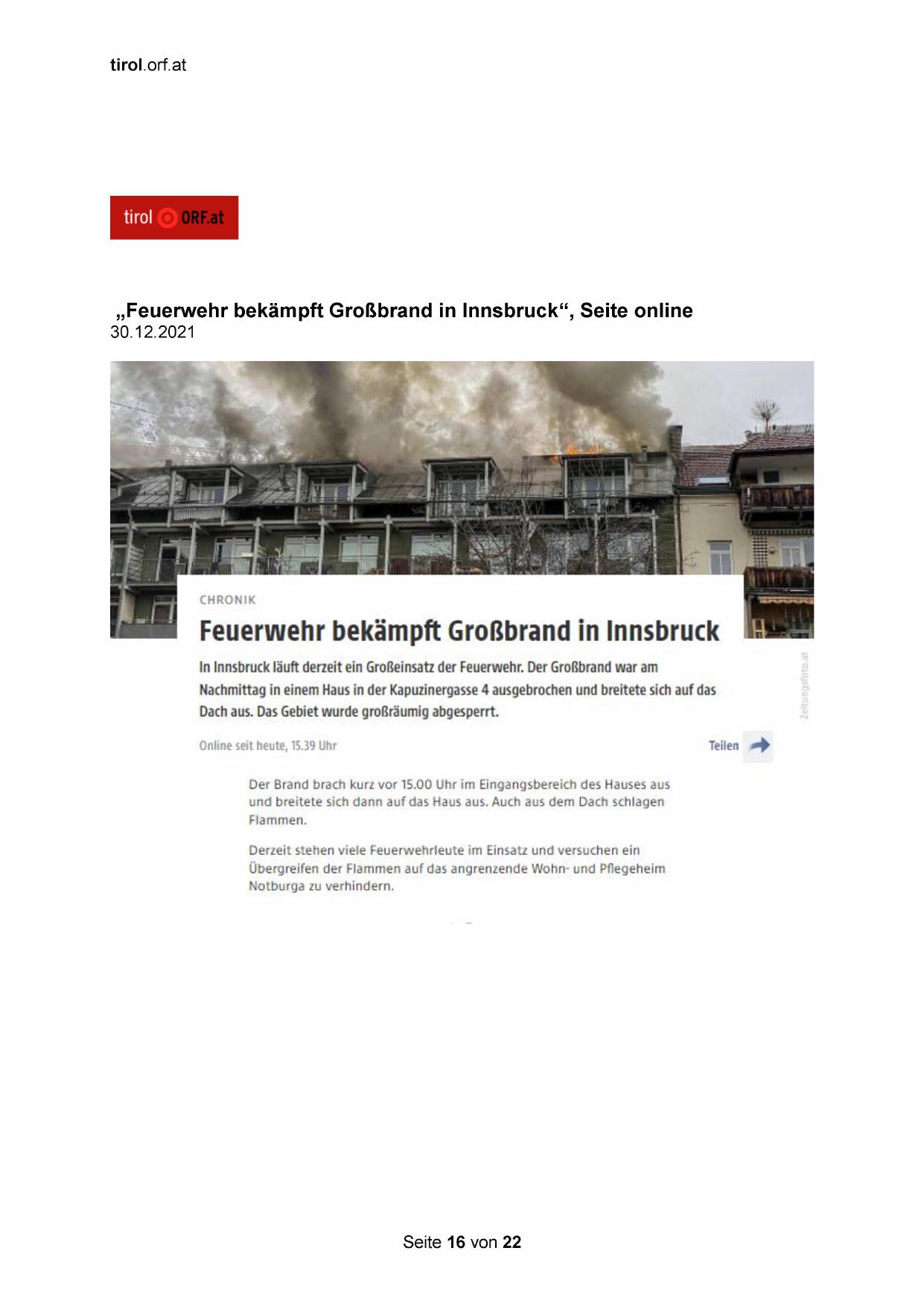 „Feuerwehr bekämpft Großbrand in Innsbruck“, Seite online