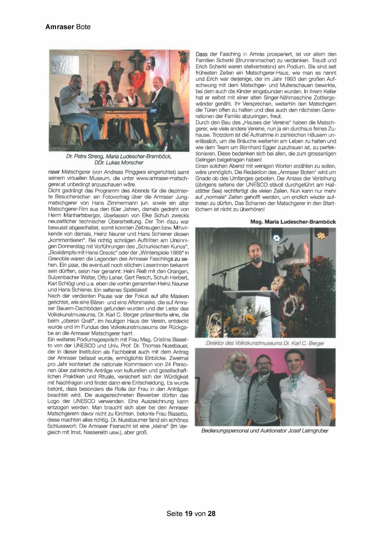 Schlusswort: Die Amraser Fasnacht ist eine „kleine“ (im Vergleich mit Imst, Nassereith usw.), aber groß.