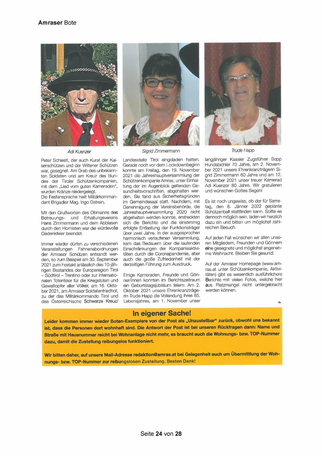 Auf der Amraser Homepage (www.amras.at unter Schützenkompanie, Aktivitäten) gibt es wesentlich ausführlichere