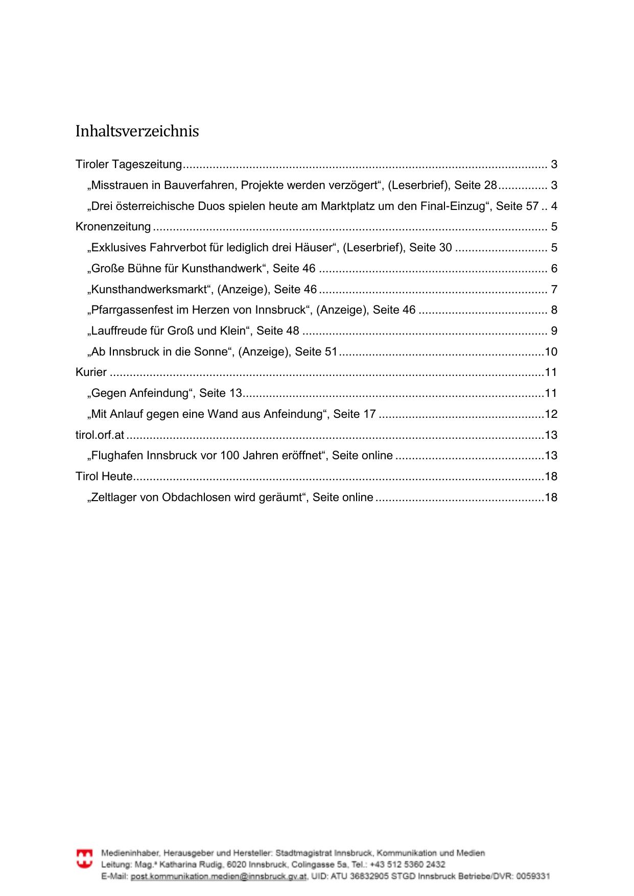 FPYY Medieninhaber, Herausgeber und Hersteller: Stadtmagistrat Innsbruck, Kommunikation und Medien