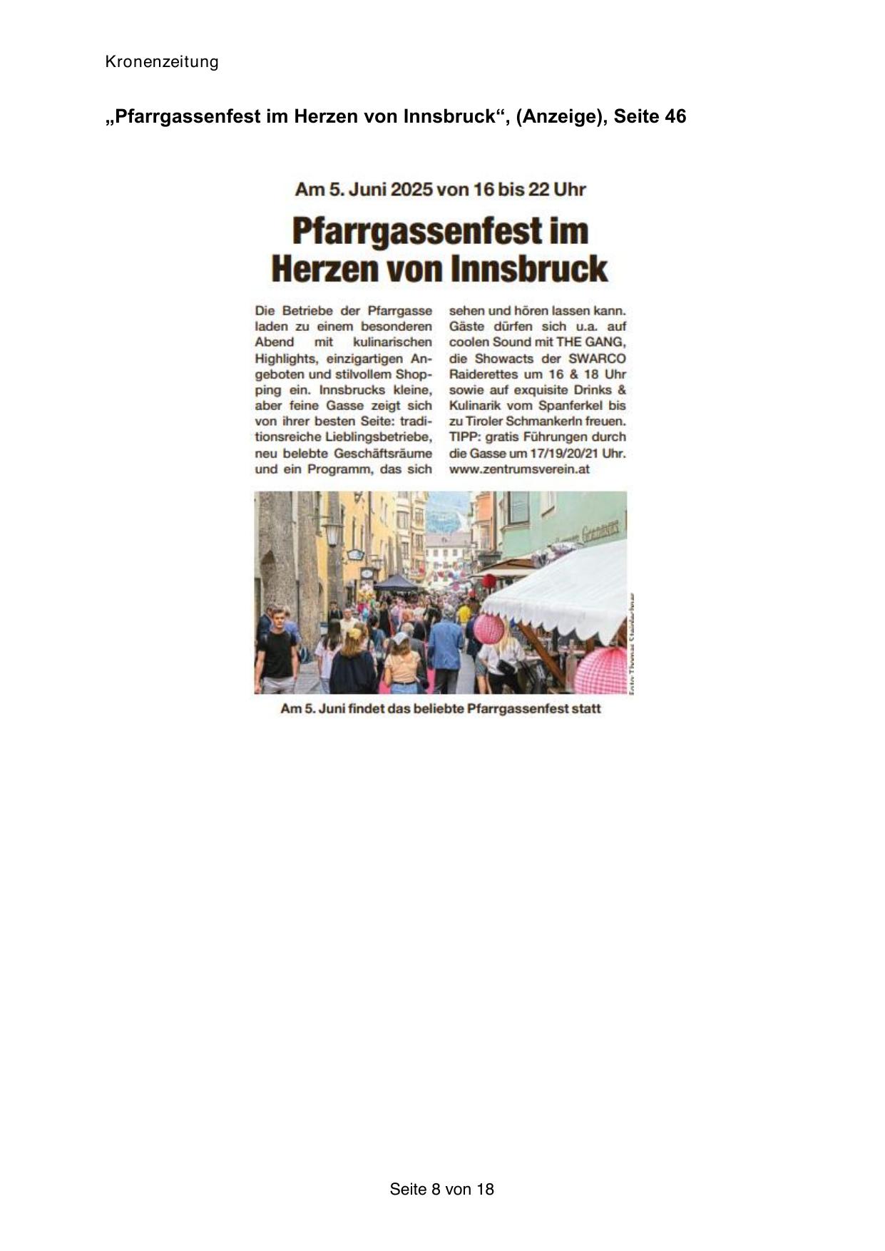 „Pfarrgassenfest im Herzen von Innsbruck“, (Anzeige), Seite 46