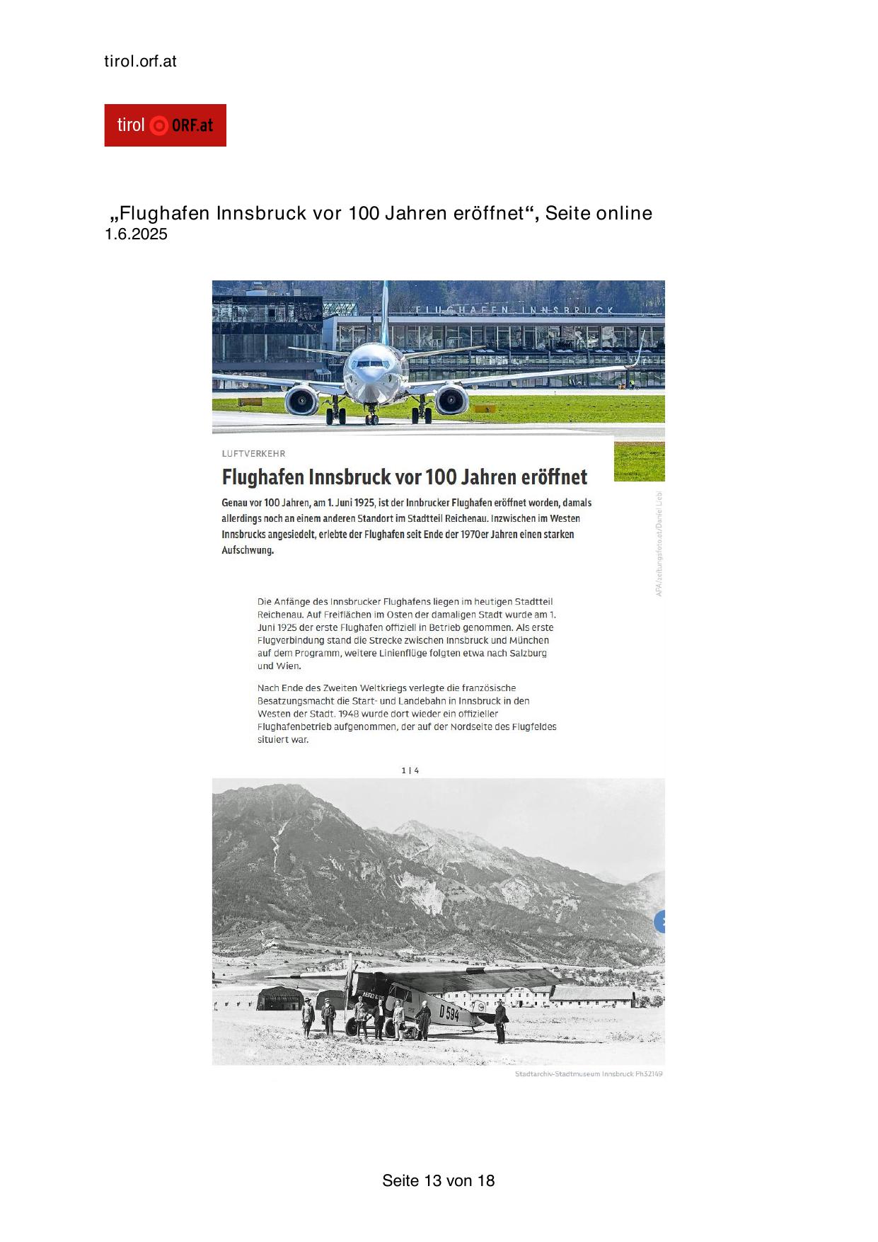 „Flughafen Innsbruck vor 100 Jahren eröffnet‘“, Seite online