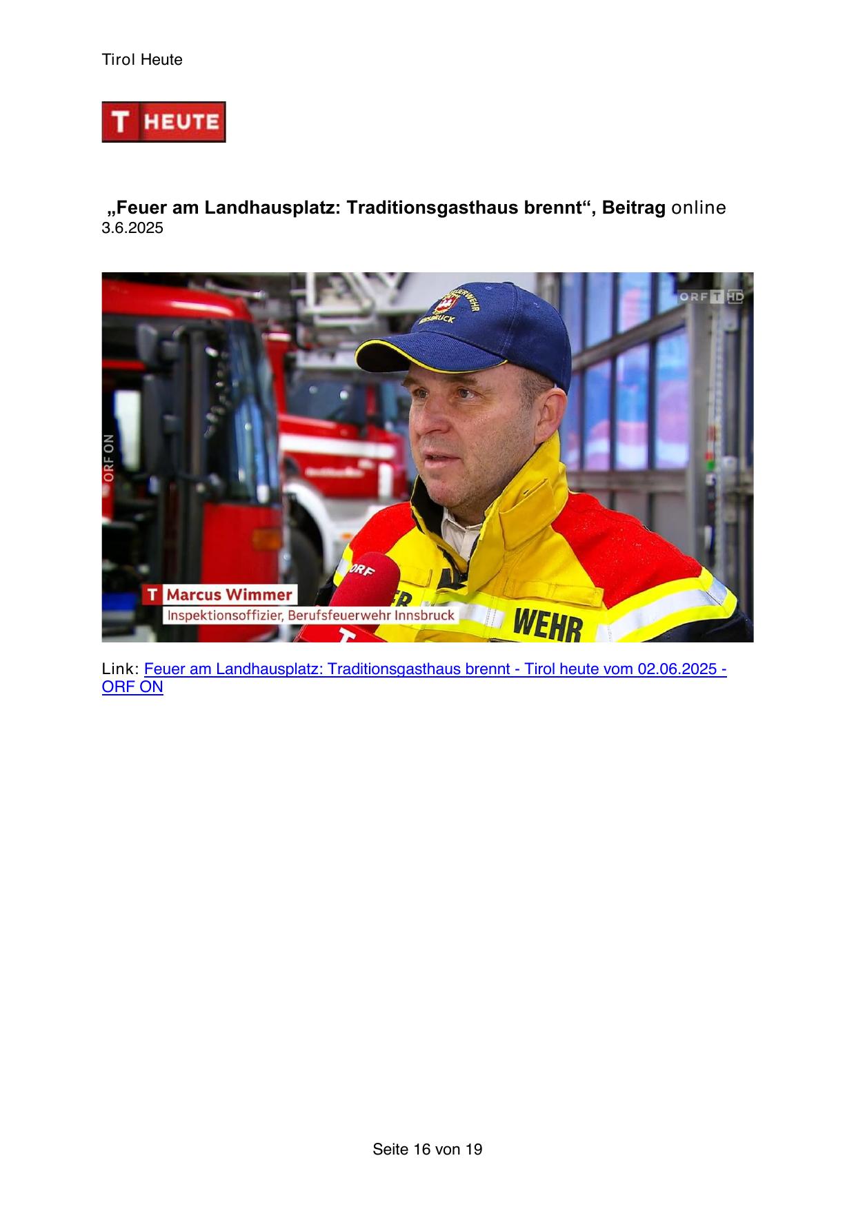 Link: Feuer am Landhausplatz: Traditionsgasthaus brennt - Tirol heute vom 02.06.2025 -