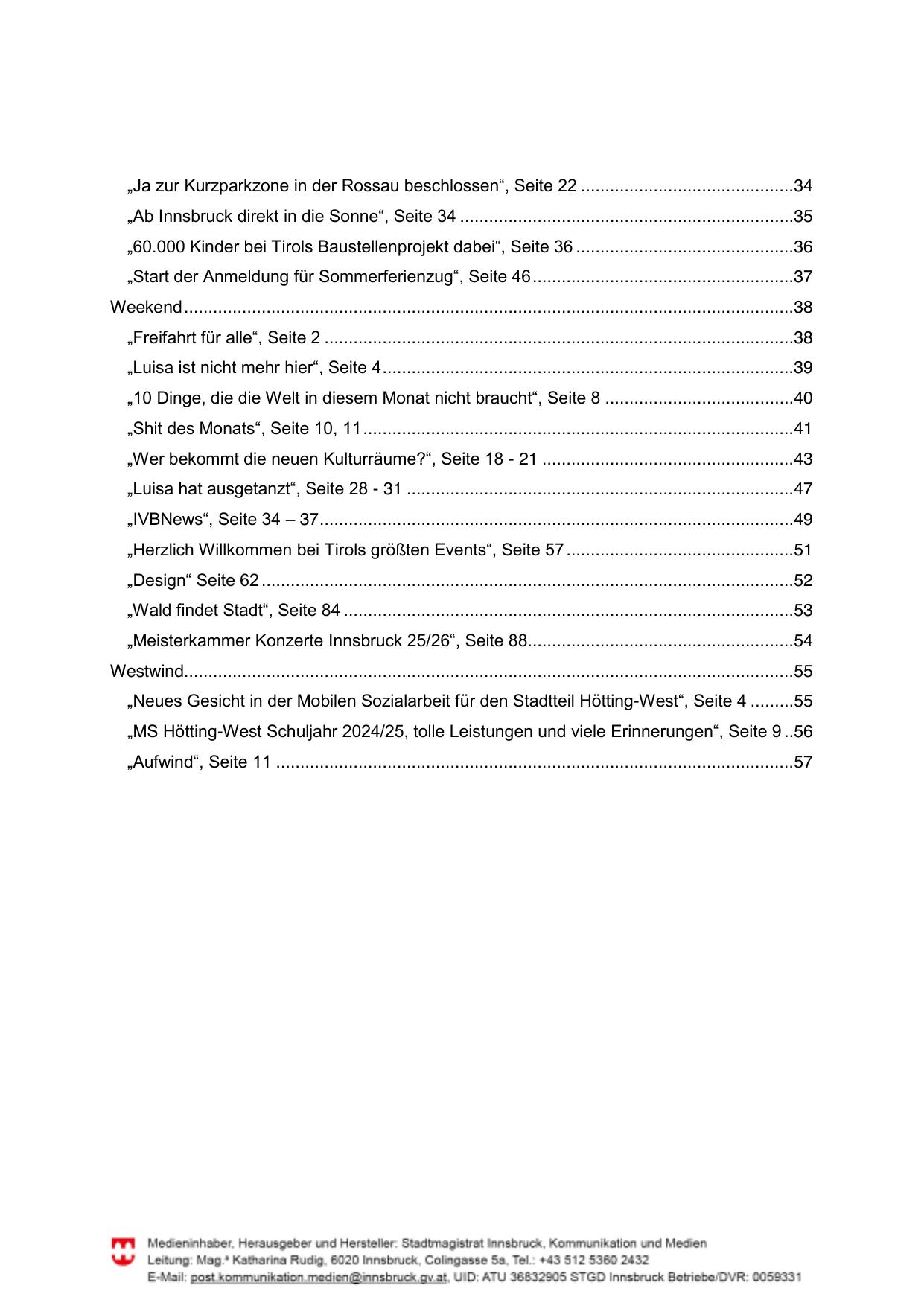 Medieninhaber, Herausgeber und Hersteller: Stadtmagistrat Innsbruck, Kommunikation und Medien