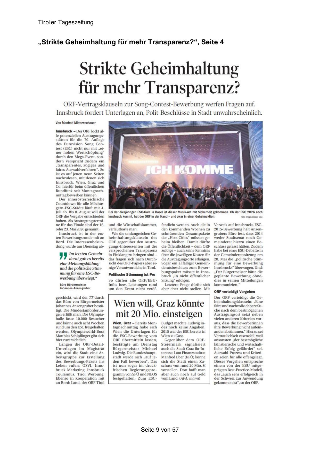 Innsbruck fordert Unterlagen an, Polit-Beschlüsse in Stadt unwahrscheinlich.