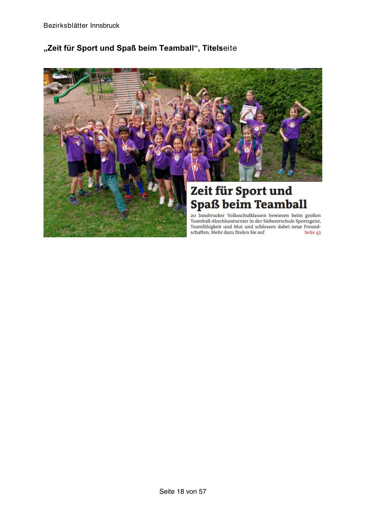 „Zeit für Sport und Spaß beim Teamball“, Titelseite