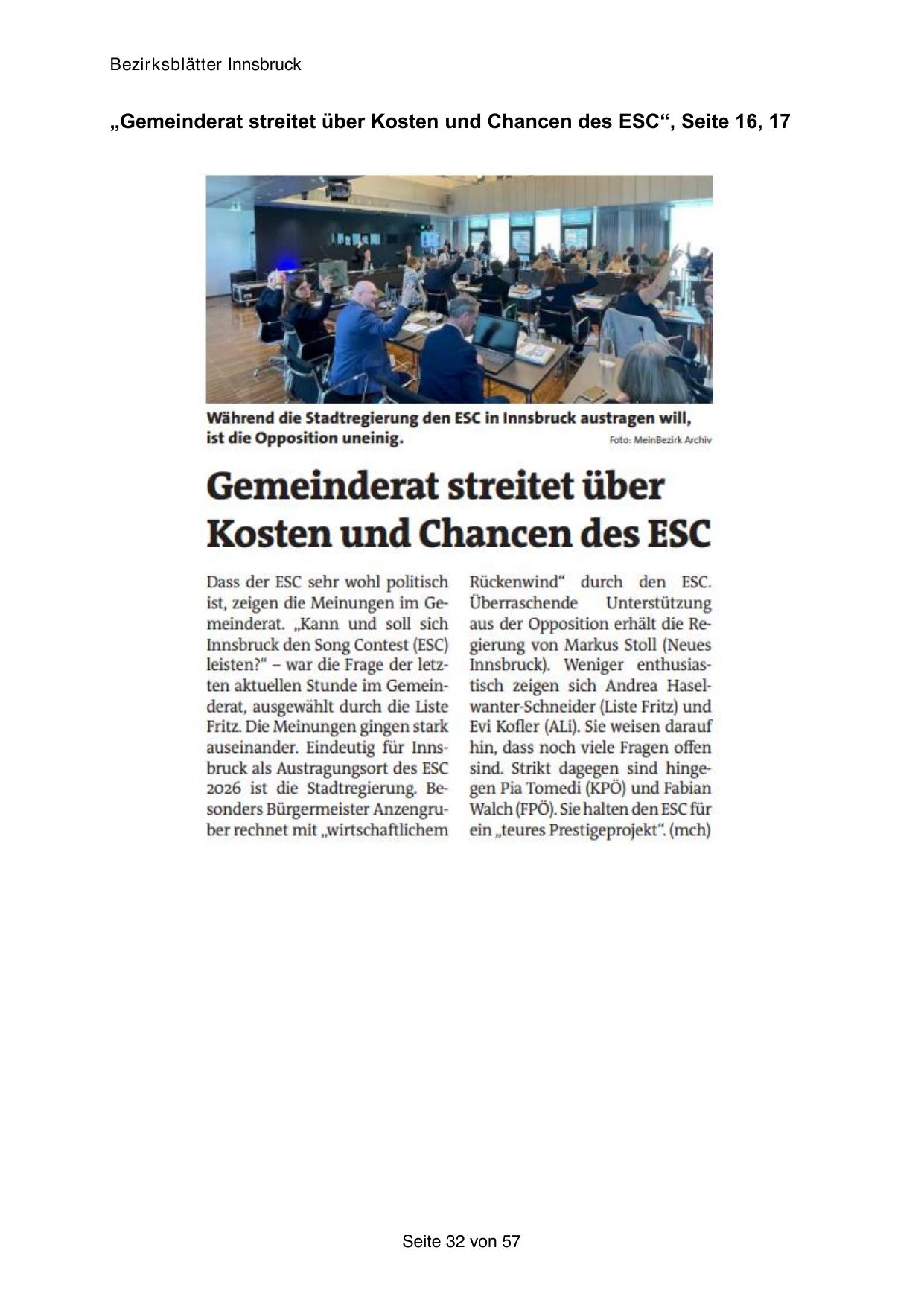 „Gemeinderat streitet über Kosten und Chancen des ESC“, Seite 16, 17
