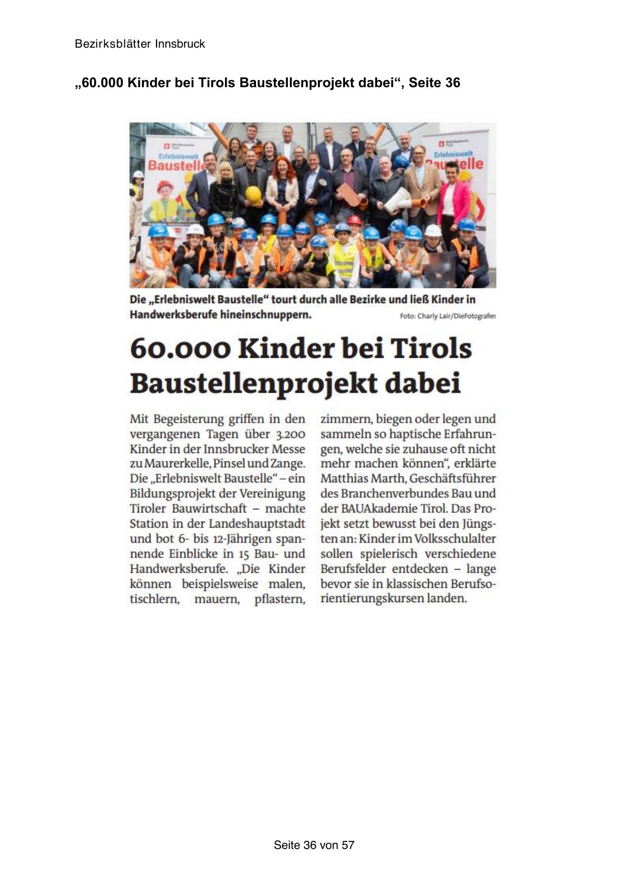 „60.000 Kinder bei Tirols Baustellenprojekt dabei“, Seite 36