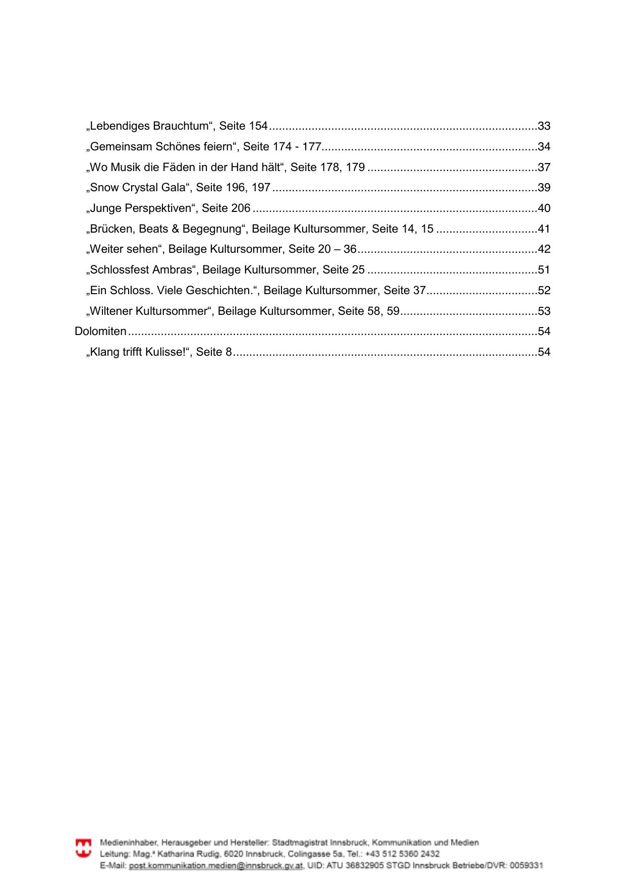 FPYY Medieninhaber, Herausgeber und Hersteller: Stadtmagistrat Innsbruck, Kommunikation und Medien