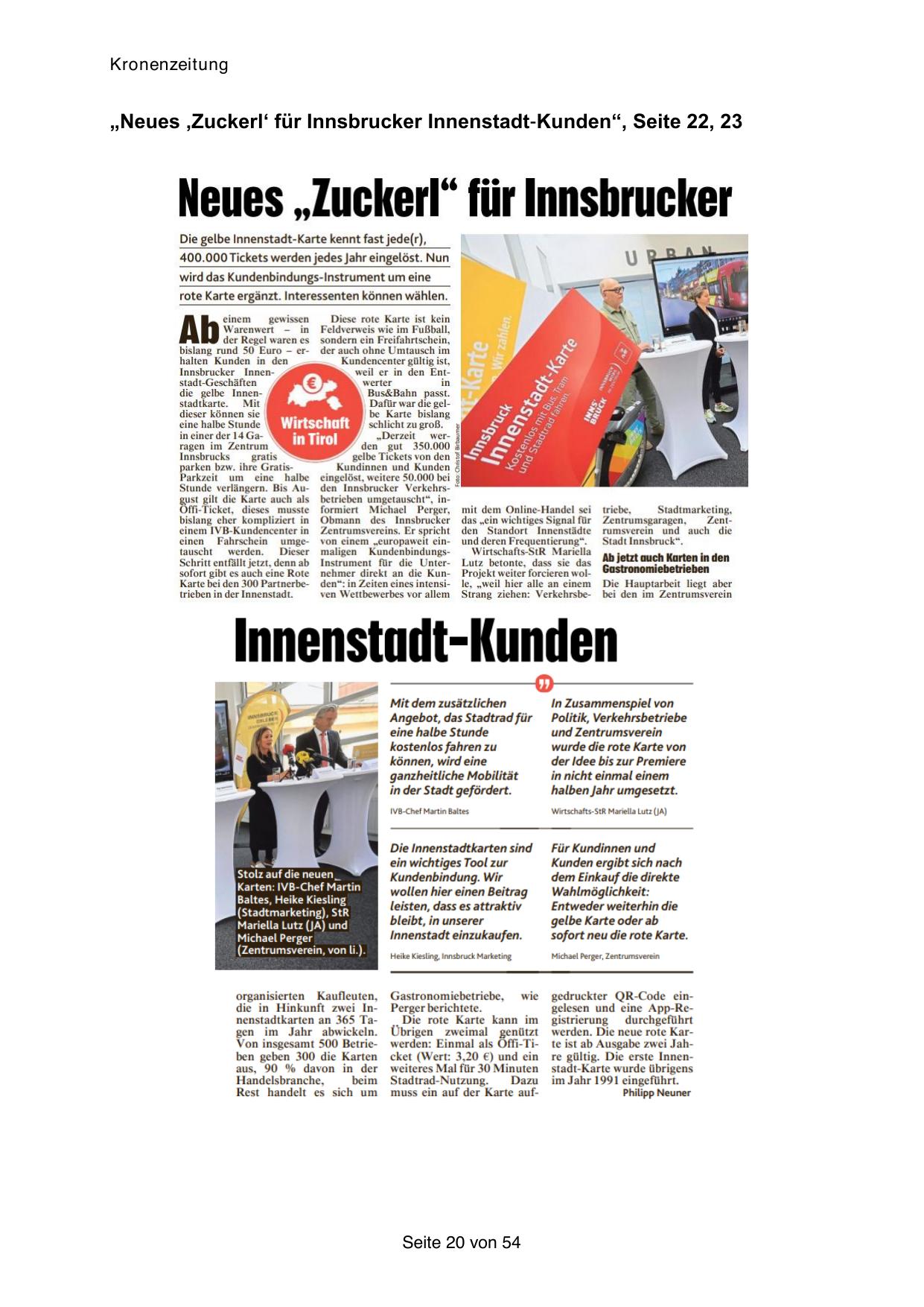 „Neues ‚Zuckerl‘ für Innsbrucker Innenstadt-Kunden“, Seite 22, 23