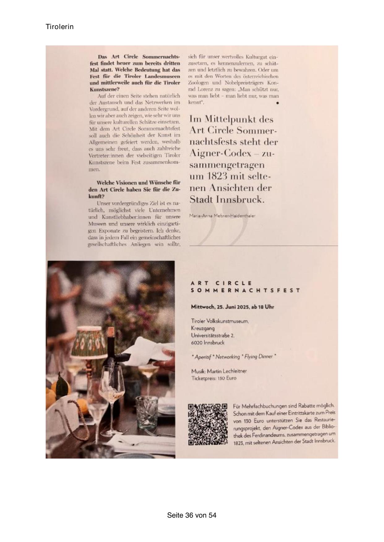 von 130 Euro unterstützen Sie das Restaurierungsprojekt, den Aigner-Codex aus der Bibliothek des Ferdinandeurms, zusammengetragen UM