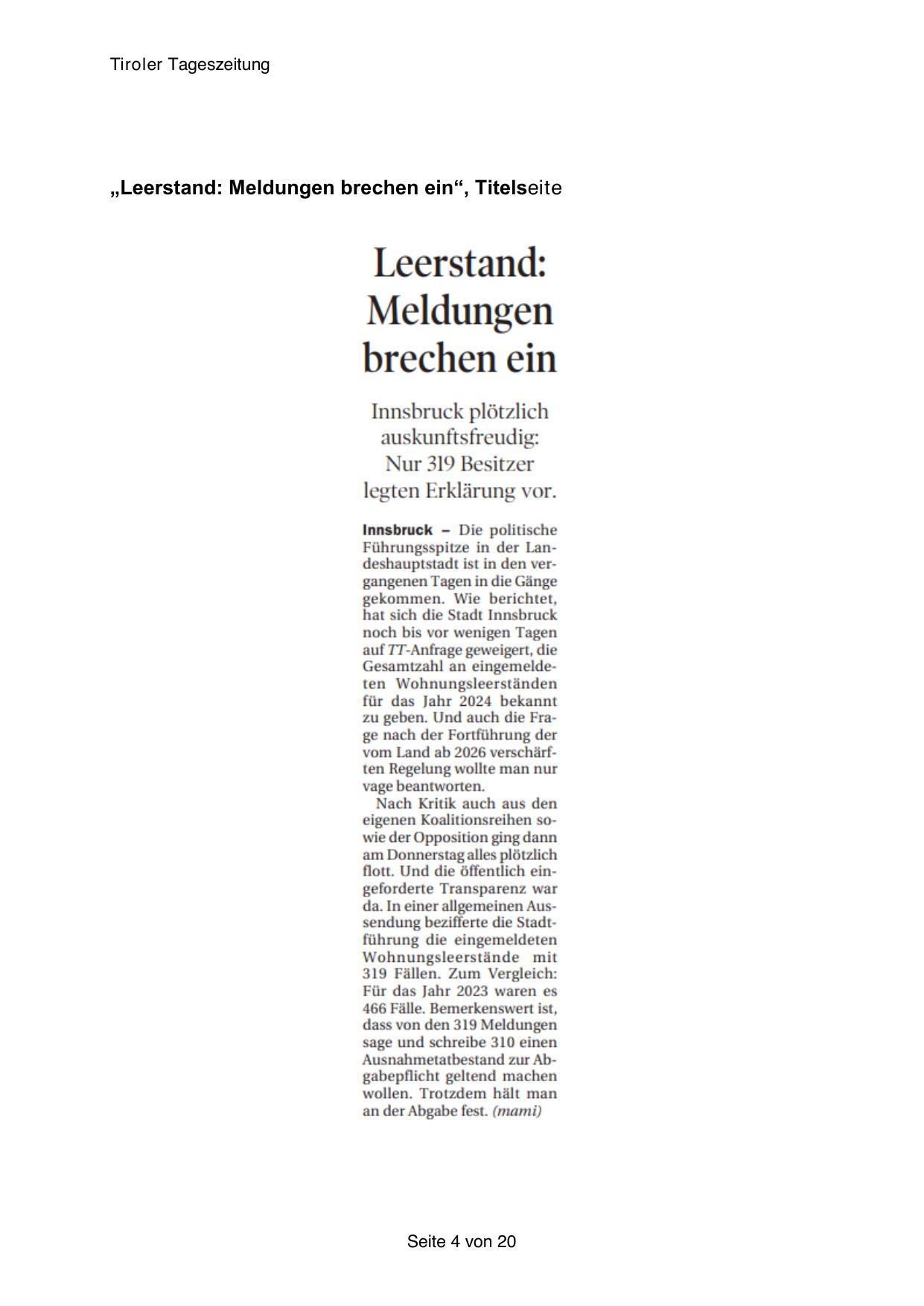 „Leerstand: Meldungen brechen ein“, Titelseite