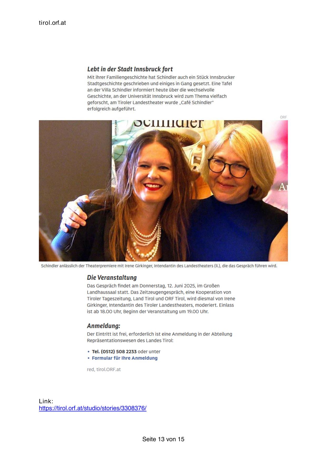 geforscht, am Tiroler Landestheater wurde „Cafe Schindler“