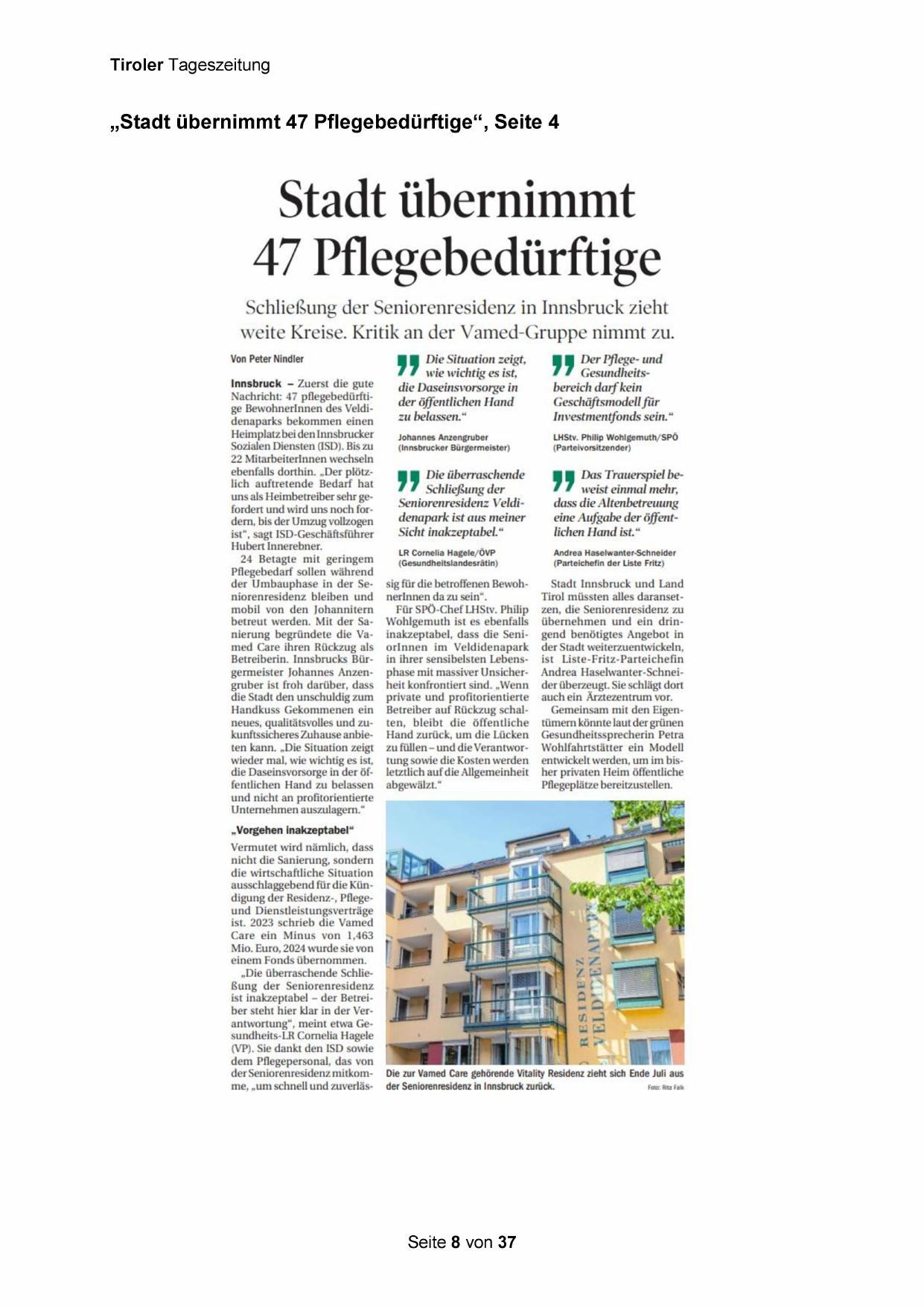 Schließung der Seniorenresidenz in Innsbruck zieht