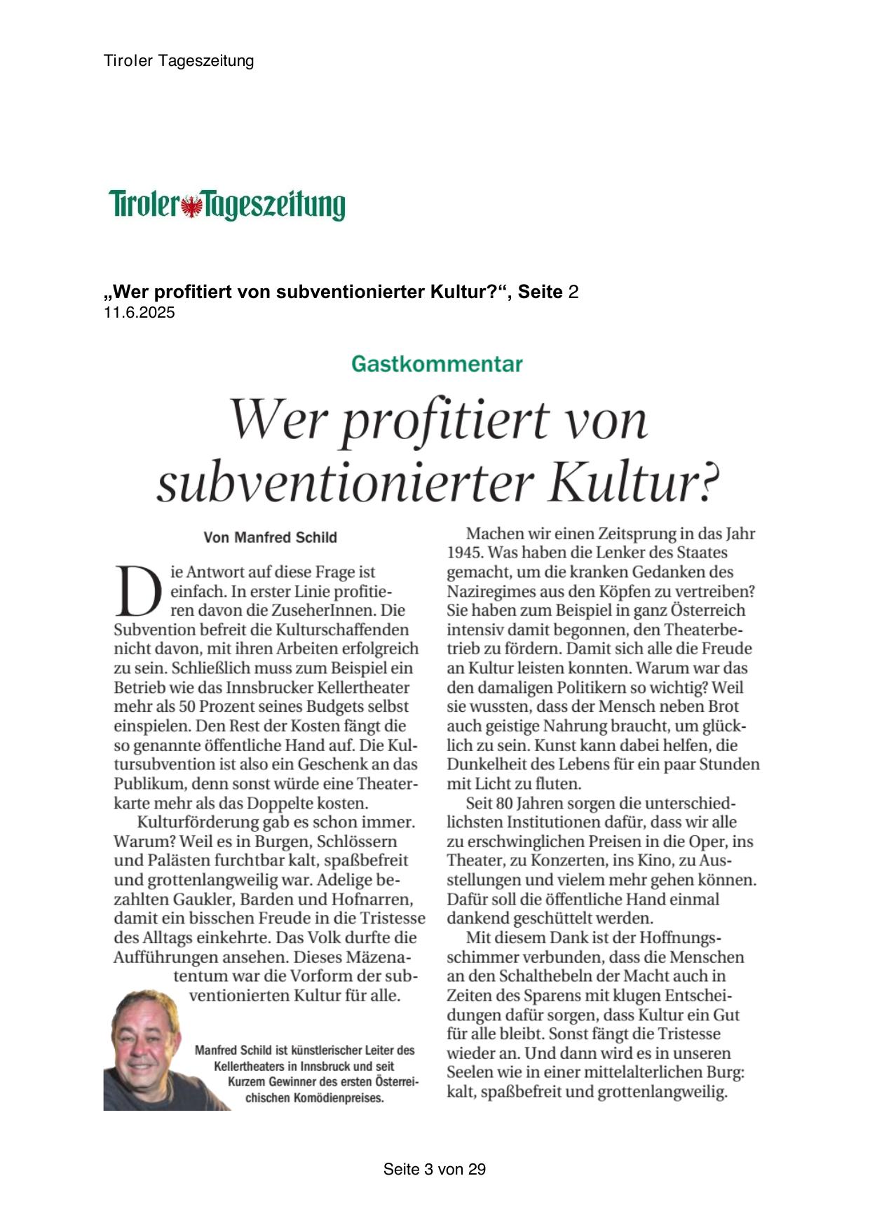 Kurzem Gewinner des ersten Österreichischen Komödienpreises.
