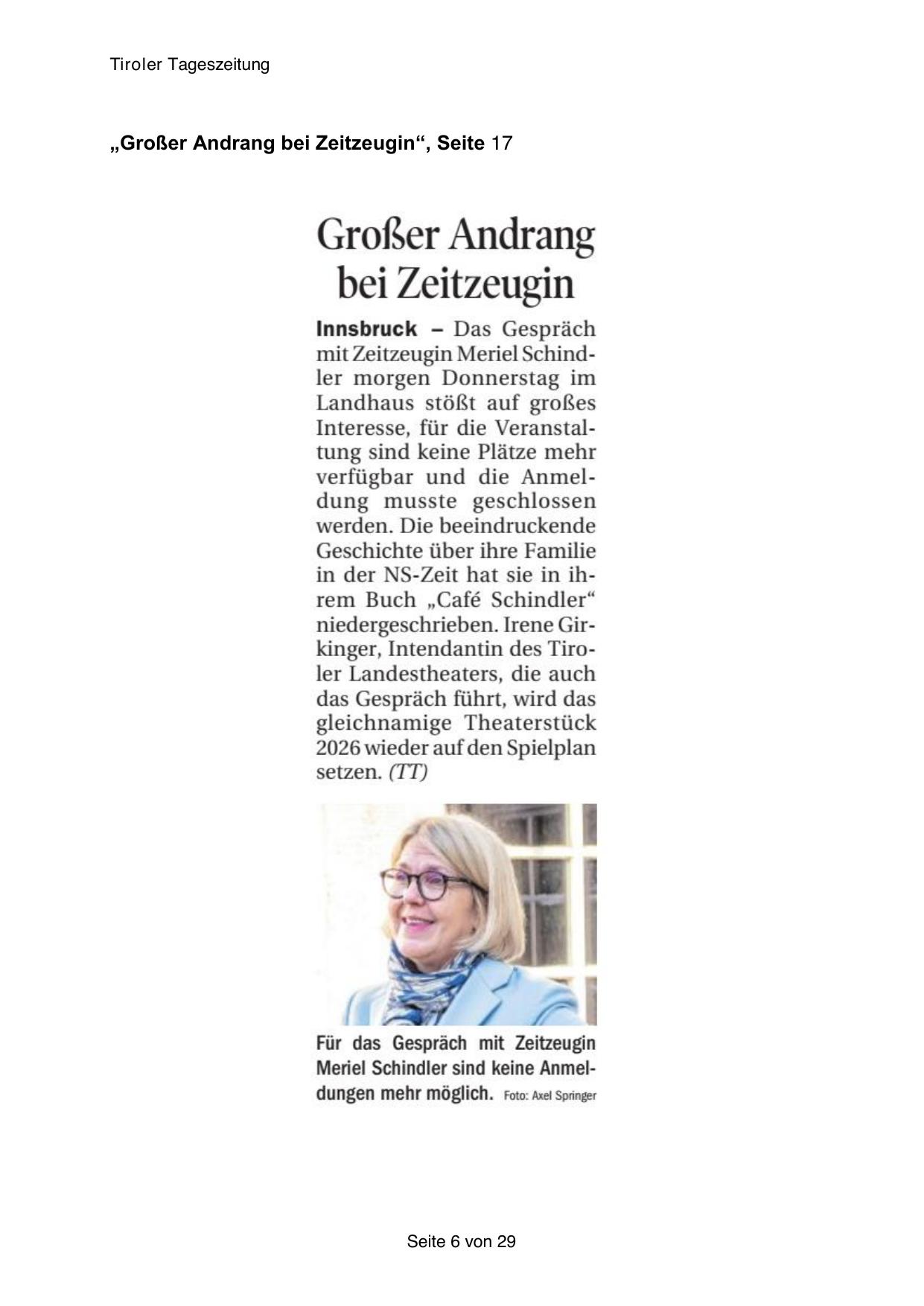 mit Zeitzeugin Meriel Schindler morgen Donnerstag im