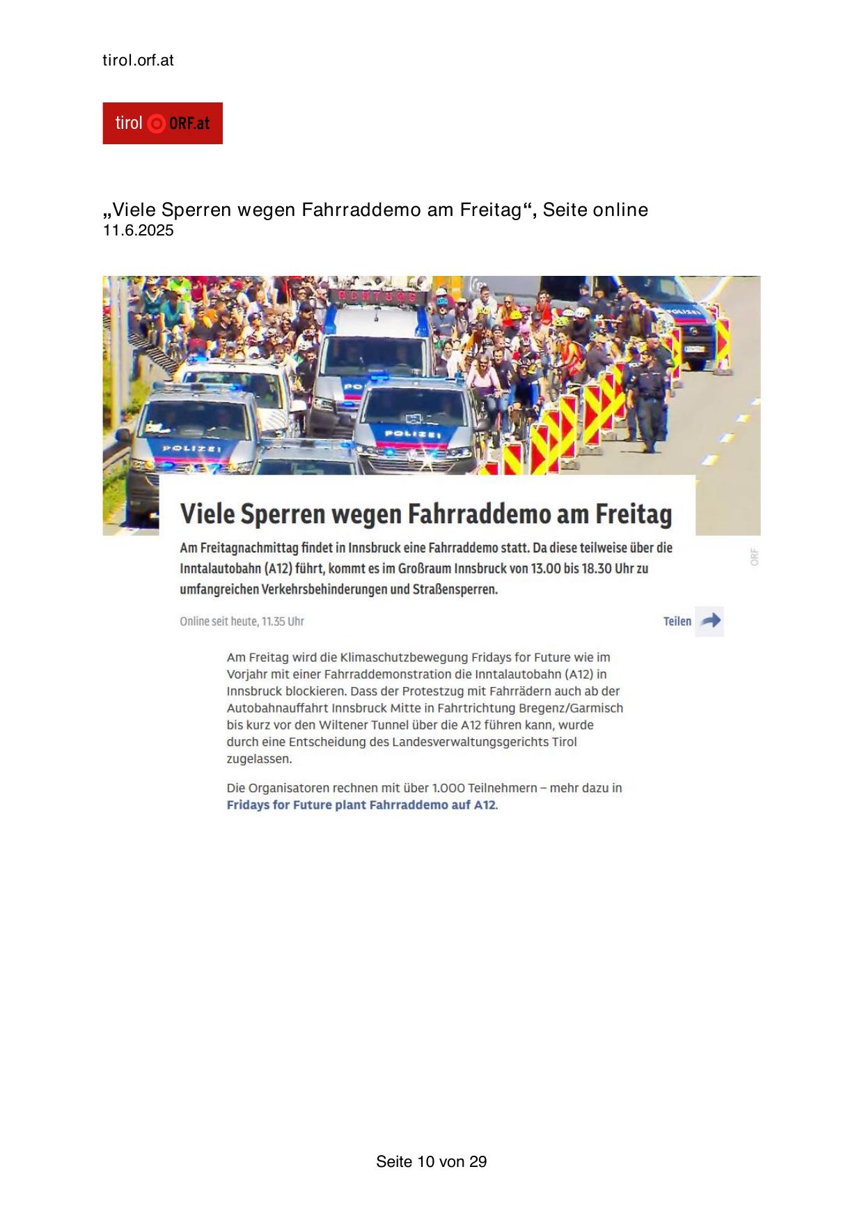 „Viele Sperren wegen Fahrraddemo am Freitag“, Seite online